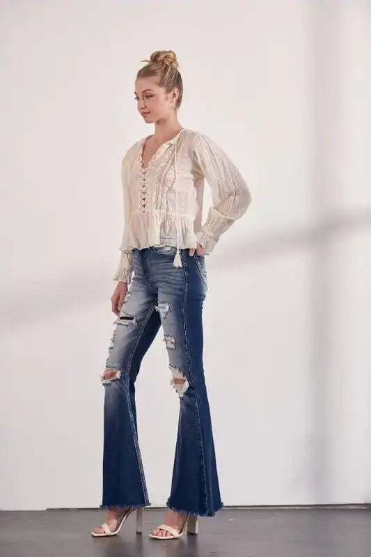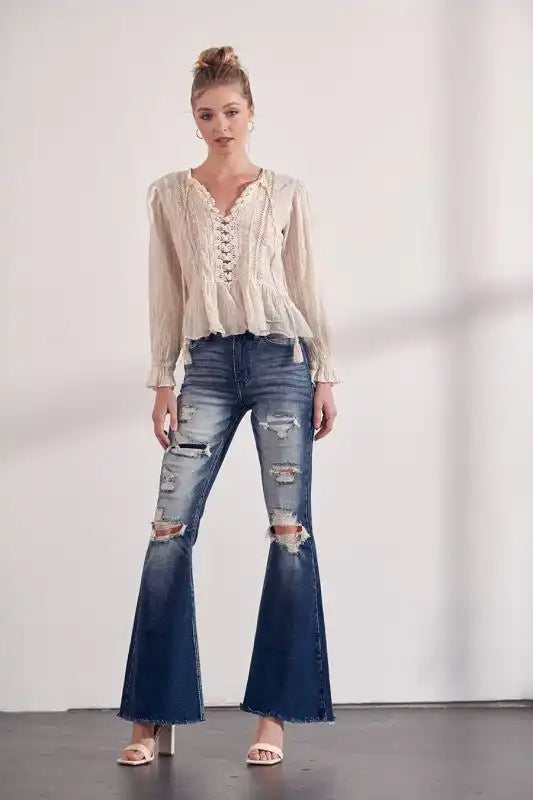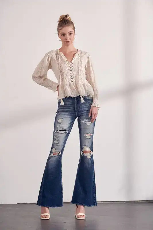 Artemis Vintage AT1016FLD High Rise Stretch Super Flare Jeans