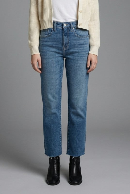 A timeless wardrobe essential updated with modern performance technology. Our High Rise Straight Leg Jeans are crafted in a versatile Medium Wash, offering a classic aesthetic with a contemporary, sculpted fit. Now featuring integrated Tummy Control pocket bags, this style provides an exceptionally smooth and supportive feel through the waist, maintaining a clean, elongated line from hip to hem.