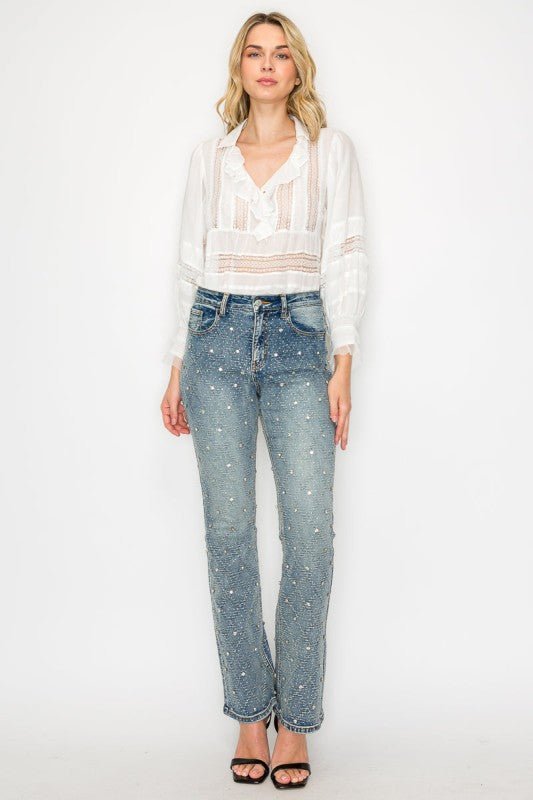 Artemis Vintage AT2072BTM Jewel Embellished Bootcut Jean DetailsStyle No. AT2072BTMShine from every angle with all-over rhinestone accents and delicate detailing...