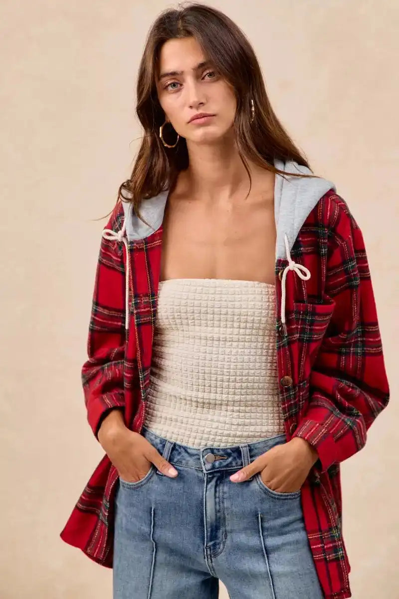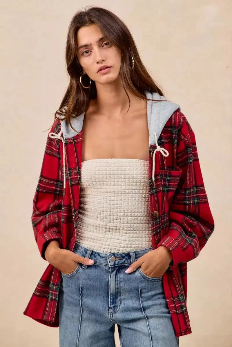 This brushed plaid hooded jacket is a stylish and cozy outerwear piece. The plaid pattern adds a classic and timeless... Read more