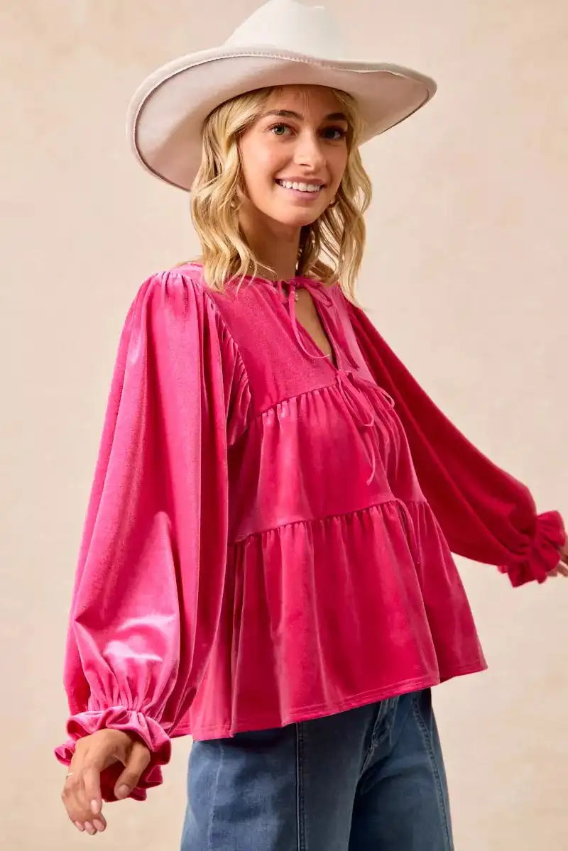 BiBi Christmas Theme Velvet Bow Tied Blouse