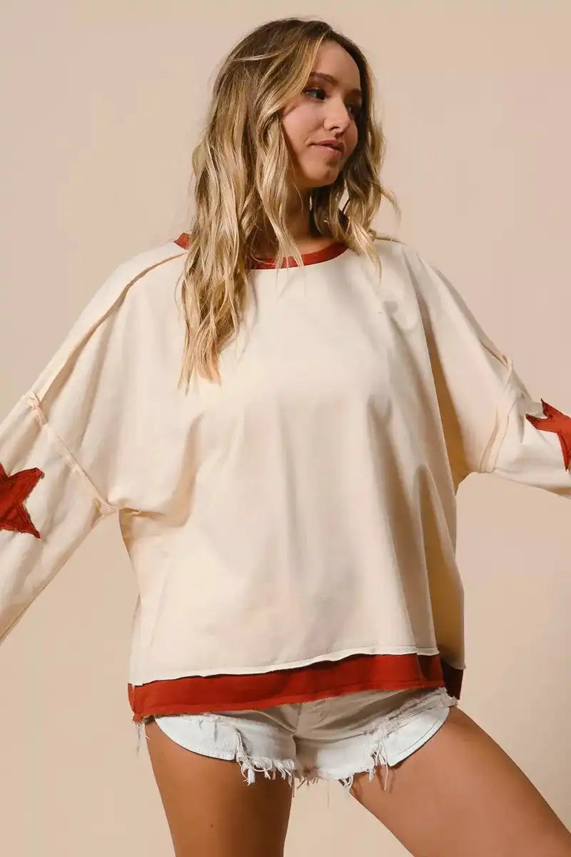 BiBi French Terry Top With Patch Detail Sweatshirt