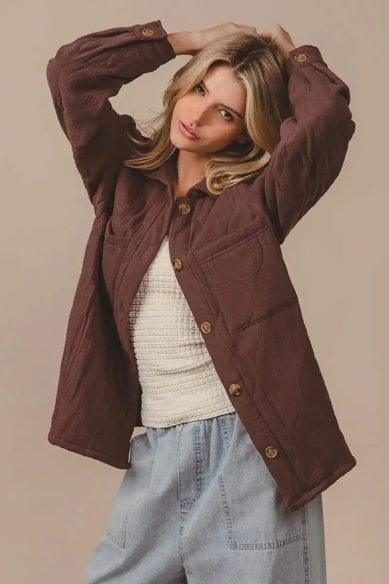 BiBi Quilted Wrinkle Gauze Long Sleeve Shacket