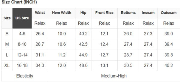 • XL: (Waist), (Hips), (Inseam), (Length)