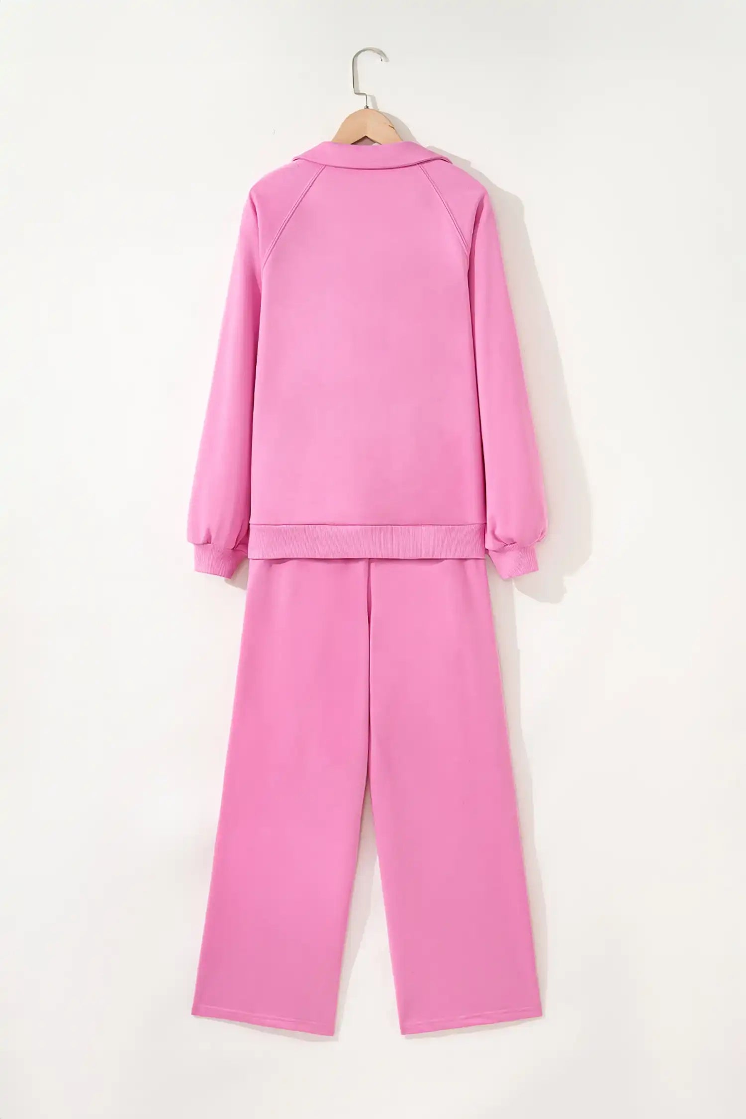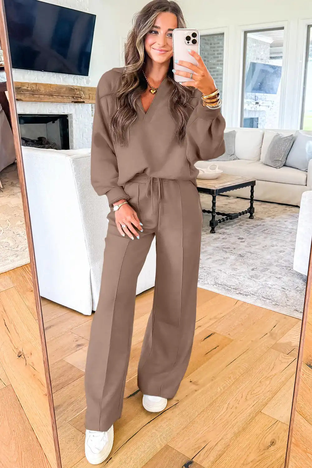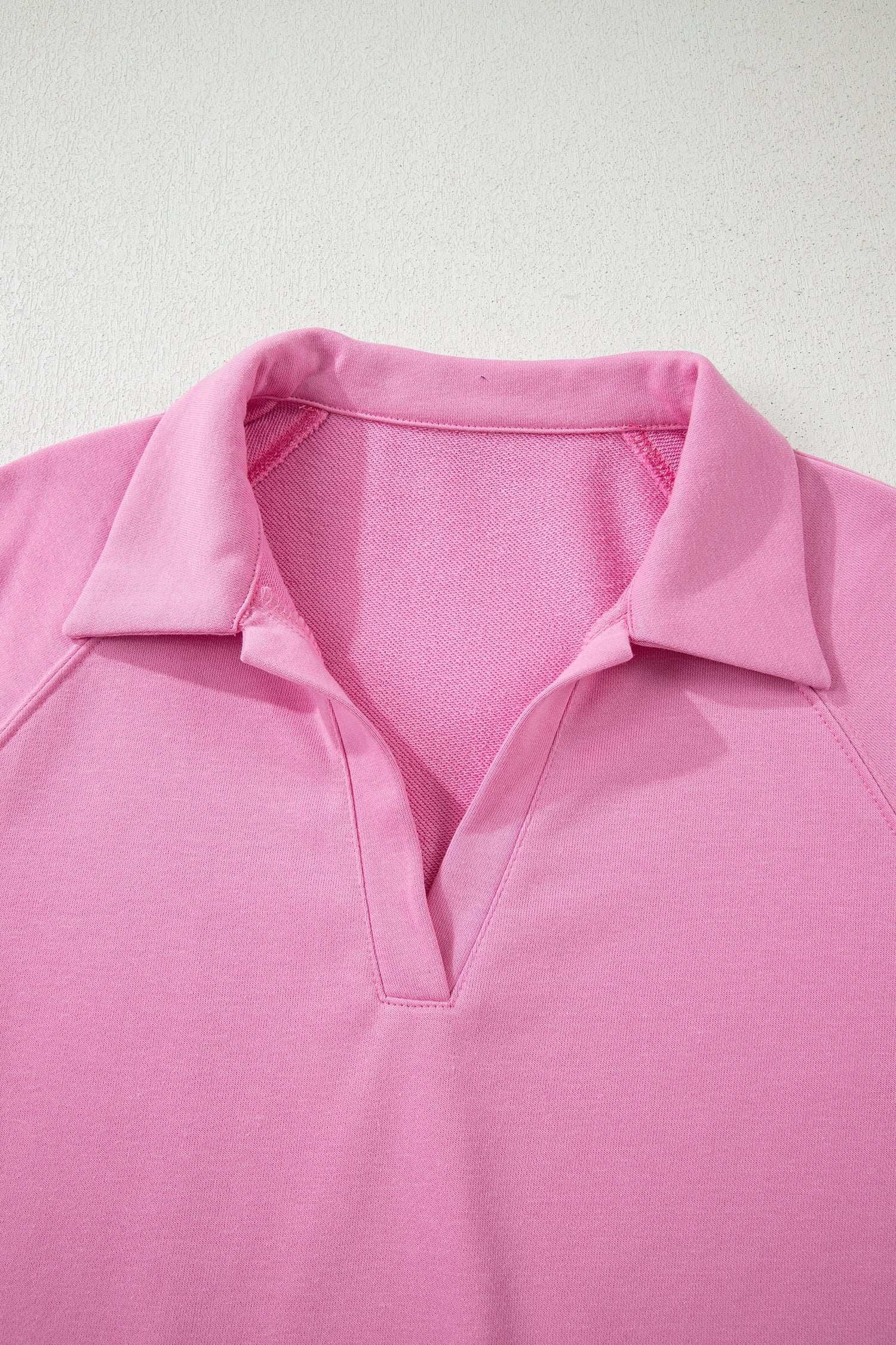 Polo Collar V Neck Pullover and Drawstring Sweatpants Set
