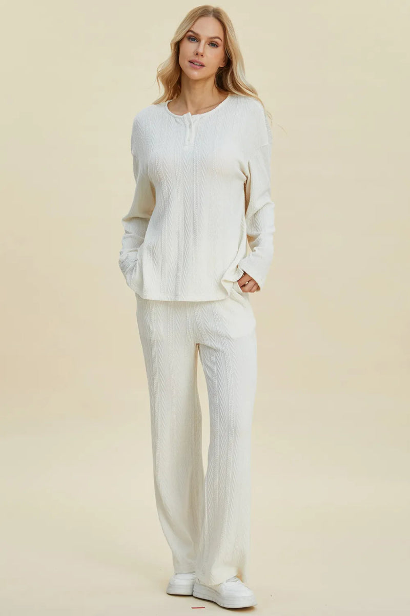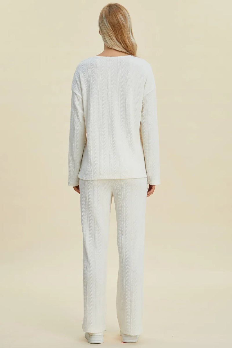 Double Take Full Size Cable-Knit Long Sleeve Top and Pants Set