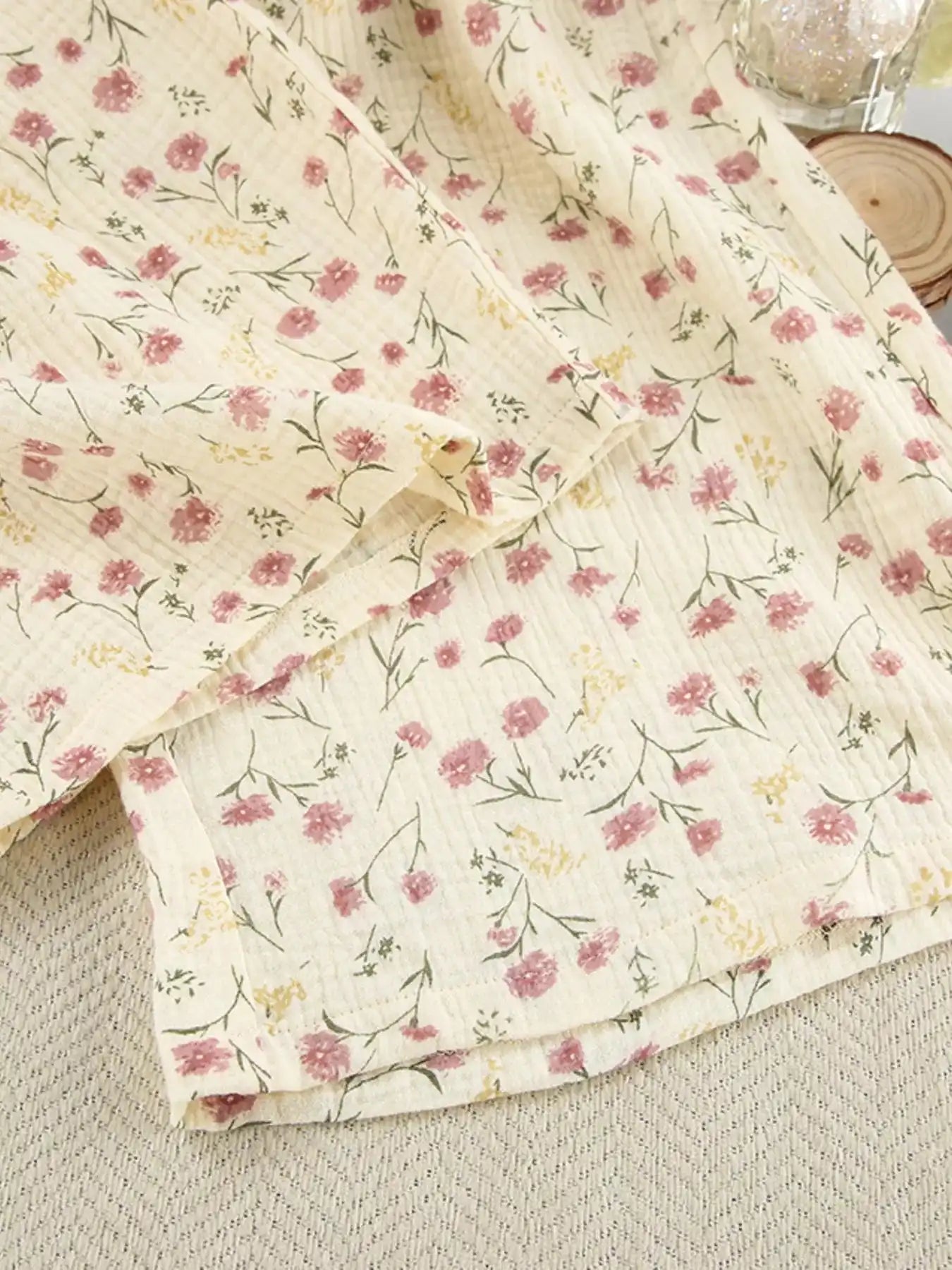 Floral Print Button-Down Top and Pants Lounge Set