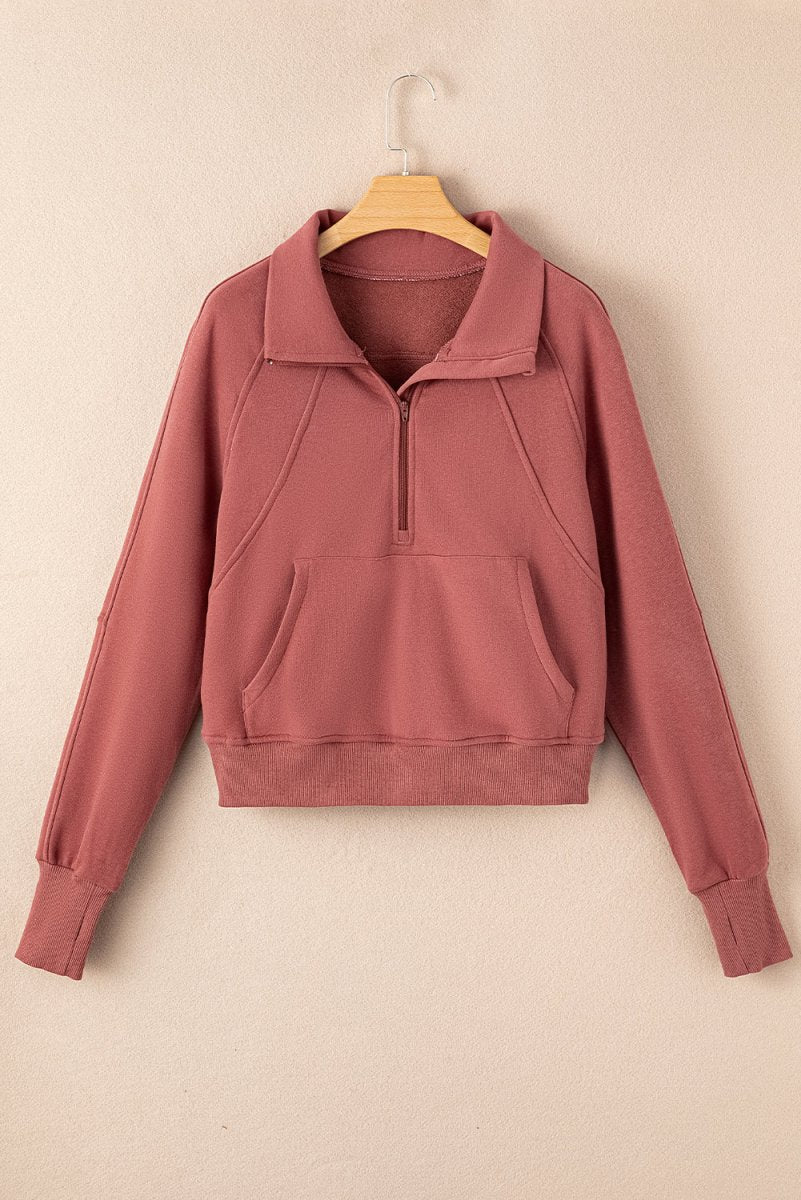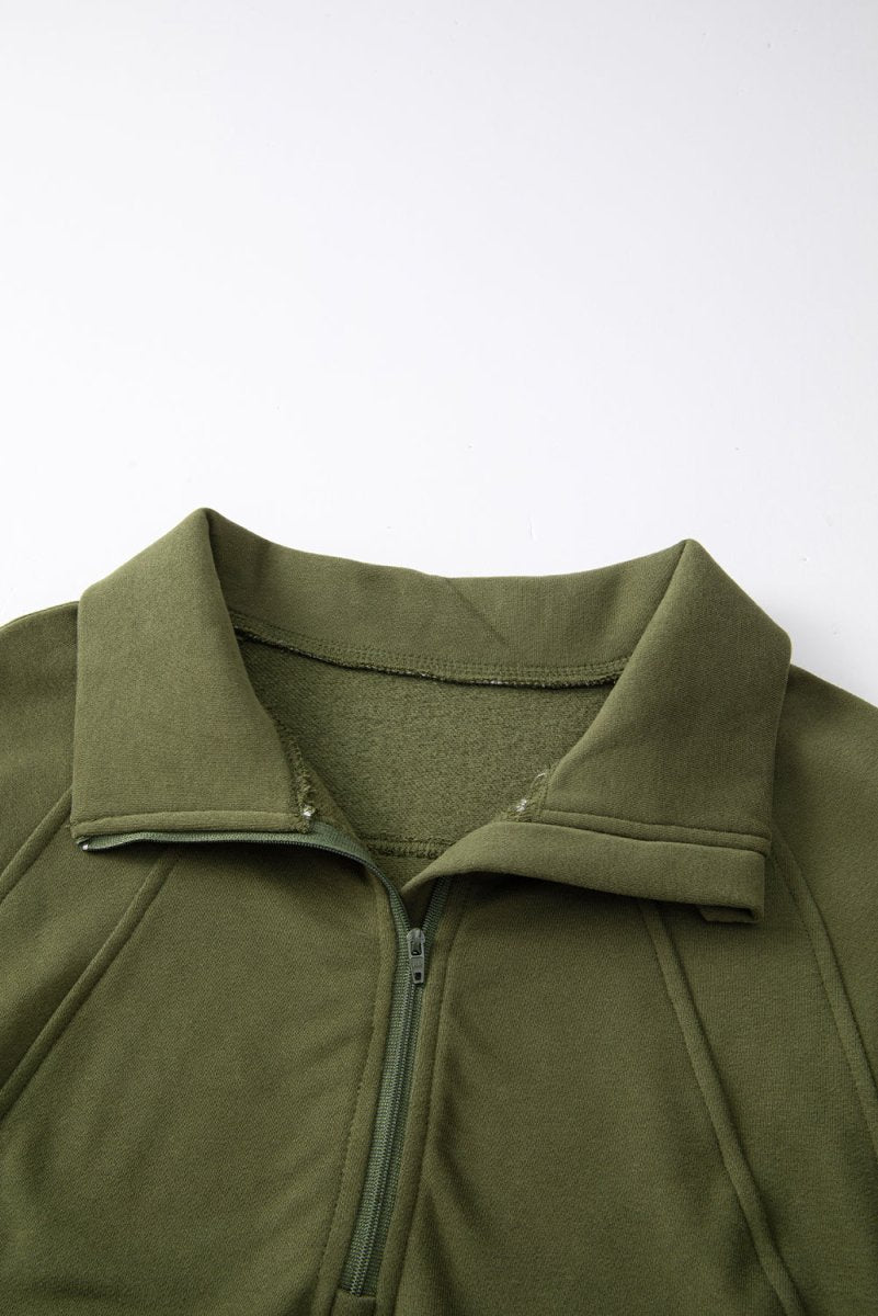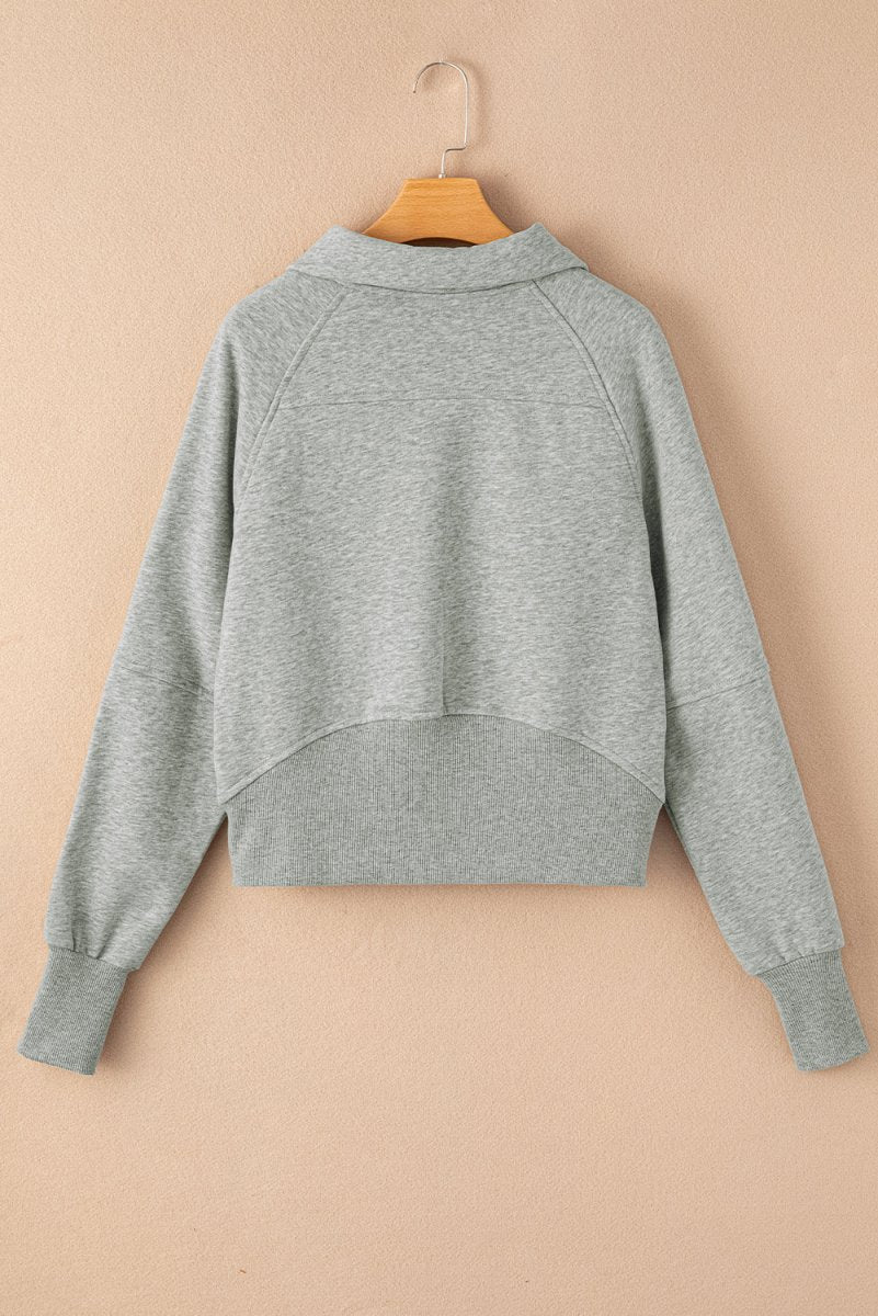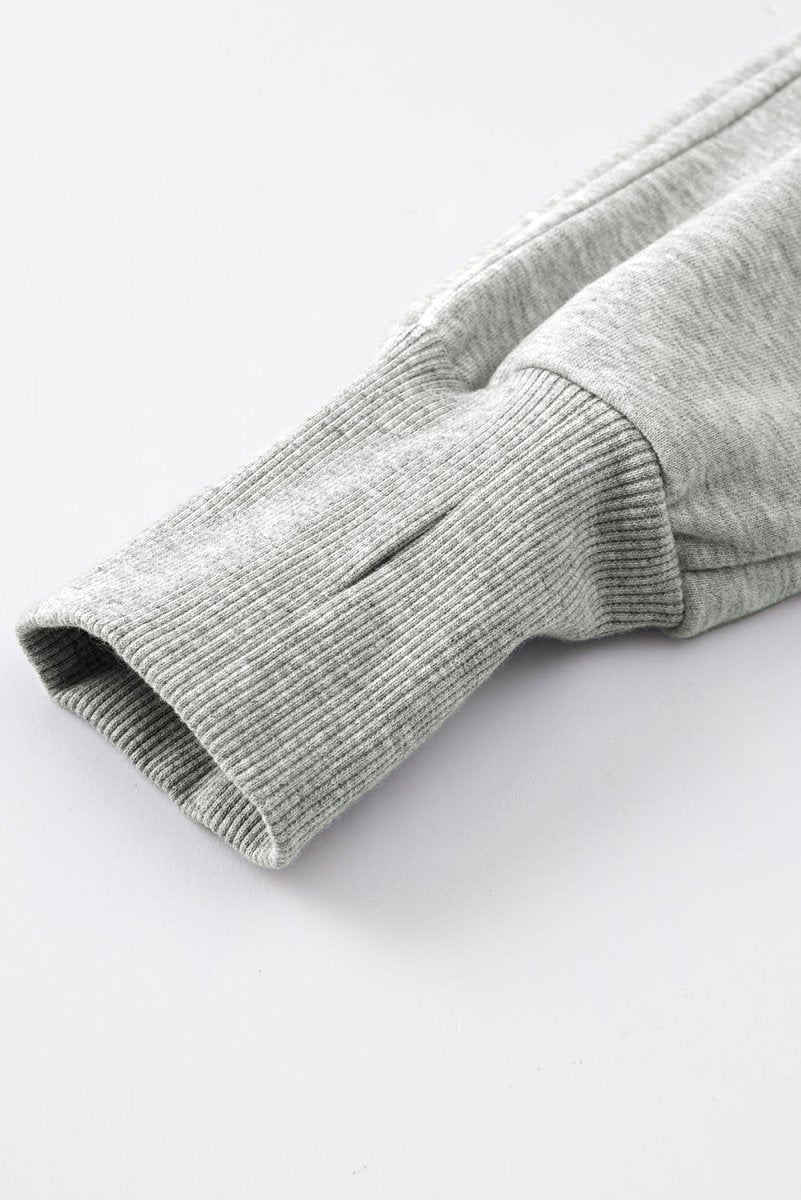 Gray Zip Up Stand Collar Ribbed Thumbhole Sleeve Sweatshirt