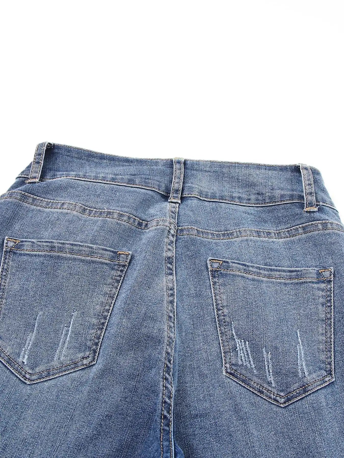 High Waist Distressed Straight Leg Jeans