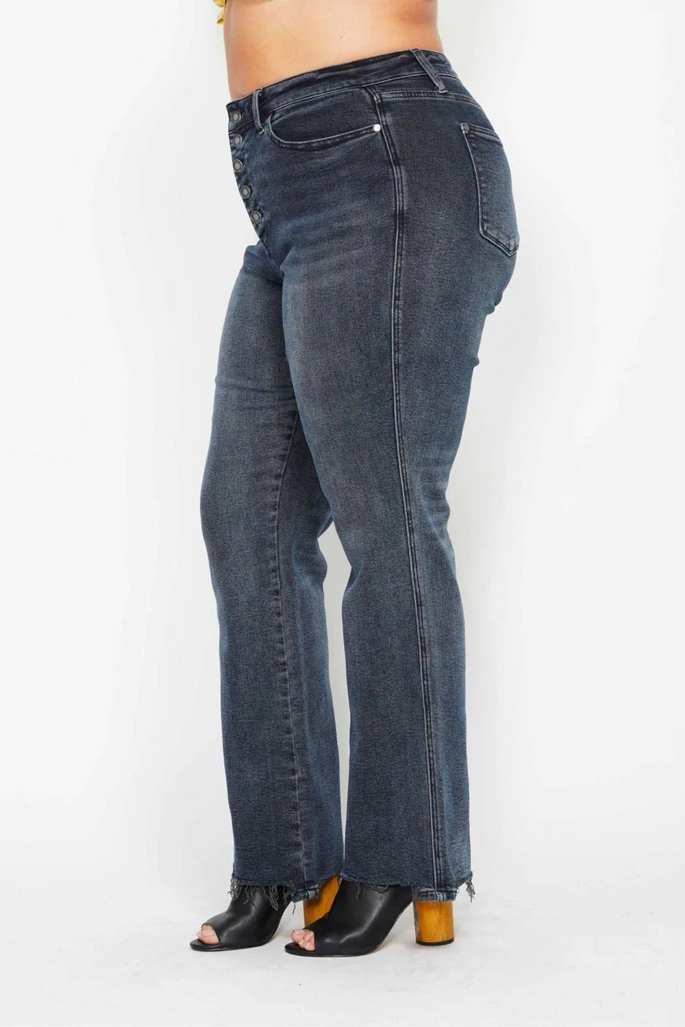 Judy Blue High Waist Button Fly Destroy Hem Straight Denim Jeans 88912