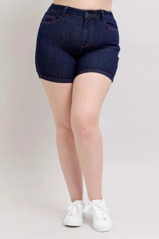 Judy Blue High Waist Heart Shaped Pkts & Red Contrast Thread Denim Shorts 150345