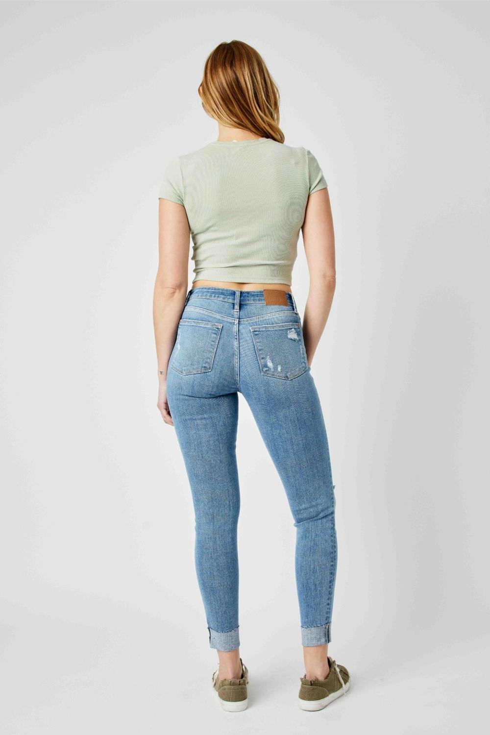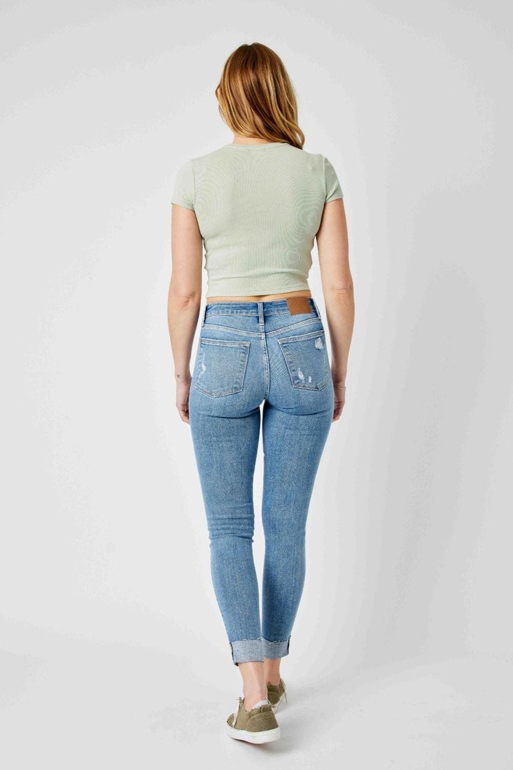 Judy Blue Mid Rise Destroy & Cuff Skinny Denim Jeans 82528