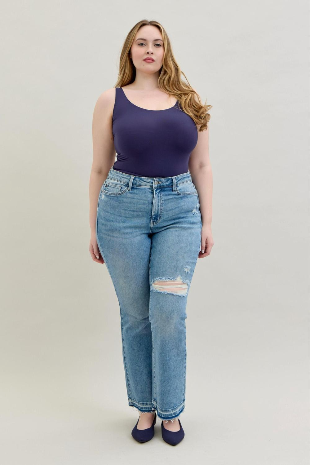 Judy Blue Mid Rise Destroy & Release Hem Bootcut Denim Jeans 88632 The Mid Rise Destroyed Hem Distressed Jeans are...