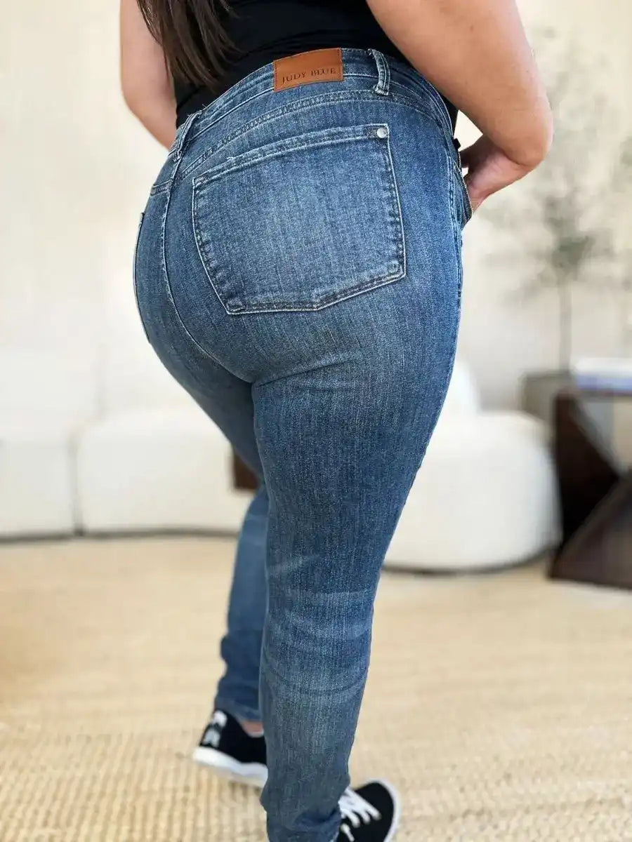 Judy Blue Mid Waist Distressed Slim Jeans 88798