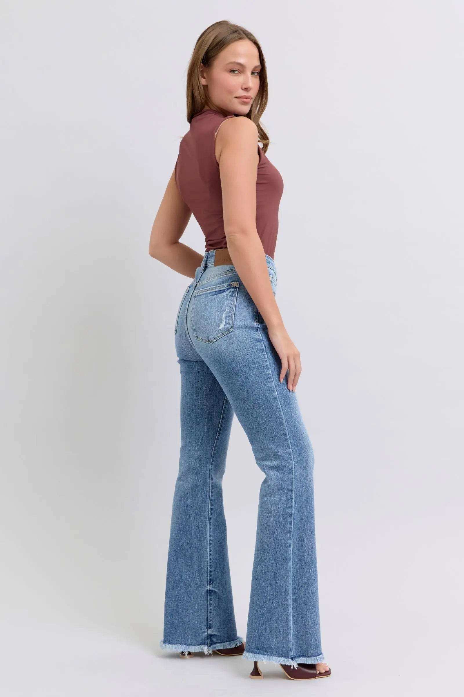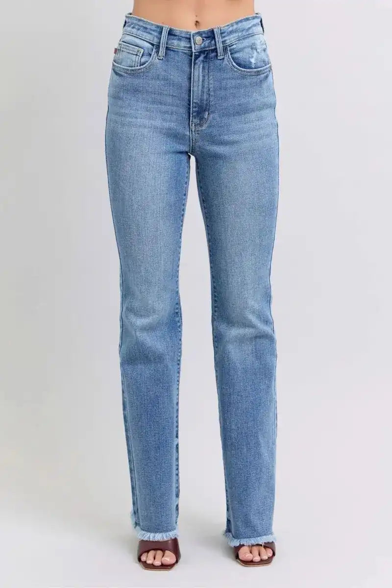 Judy Blue High Waist Fray Hem Bootcut Denim Jeans 82486