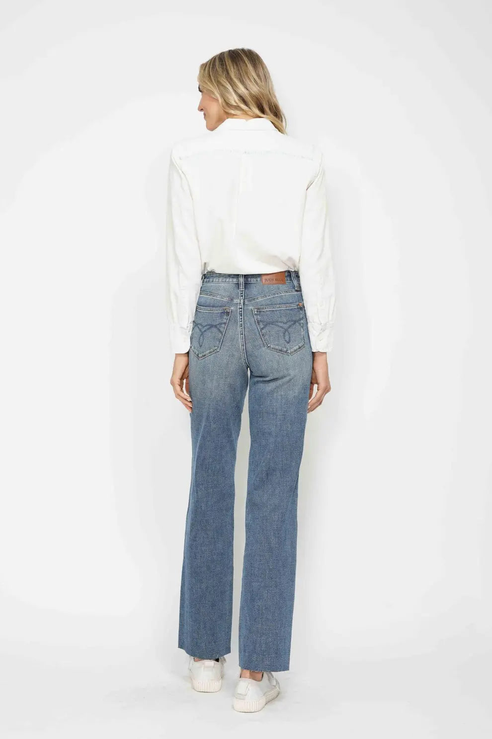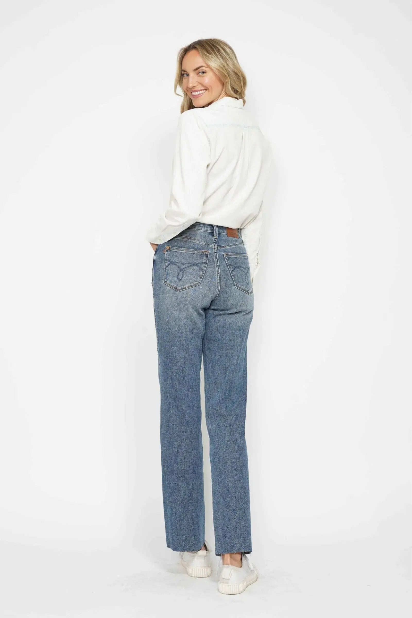 Judy Blue High Waist "Tummy Control" Raw Hem Straight Denim Jeans 88848