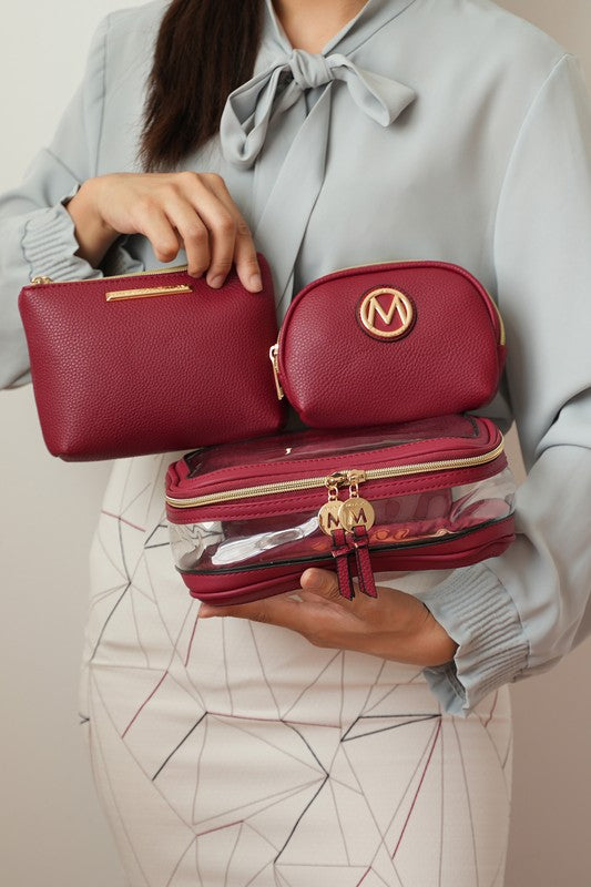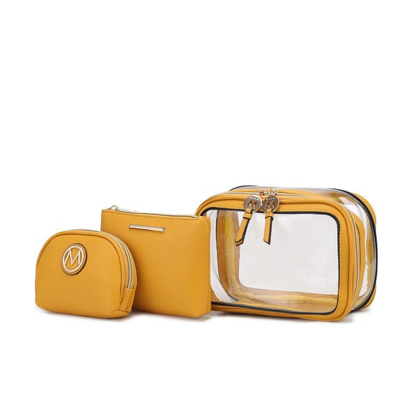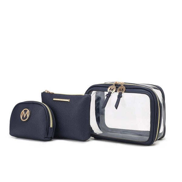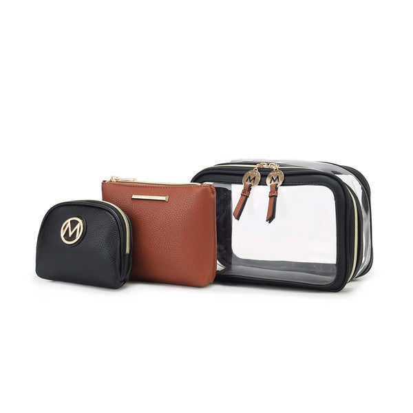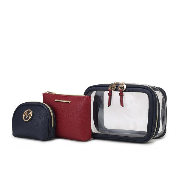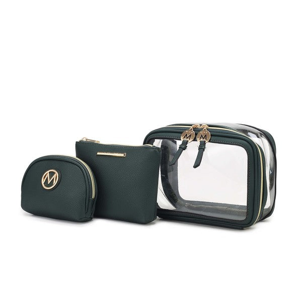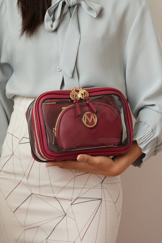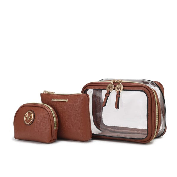 MKF Collection Laura 10 PCS Cosmetic Set by Mia K-Luxurious gold-tone embellishments-Large Clear Cosmetic Pouch: 10 in L x 6...