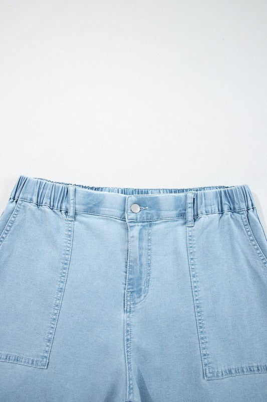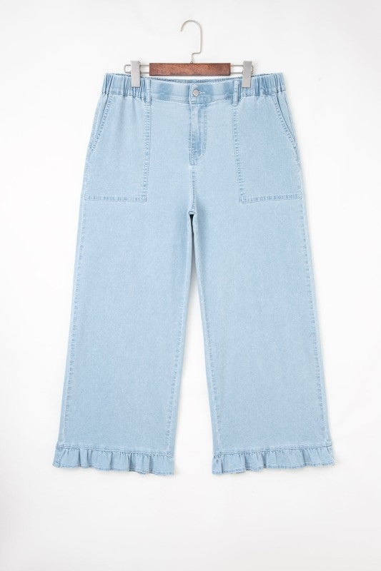 Designed for curves, these plus-size jeans deliver effortless style and comfort. The relaxed silhouette flows beautifully while the ruffled hem adds a contemporary edge. An elastic waistband ensures a flexible, forgiving fit that moves with you throughout the day. Perfect for creating a flattering silhouette that celebrates your shape with confidence and ease.