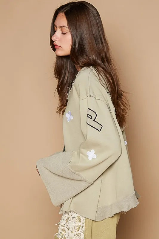 POL Peace Embroidered Exposed Seam Back Ruffle V-Neck Top