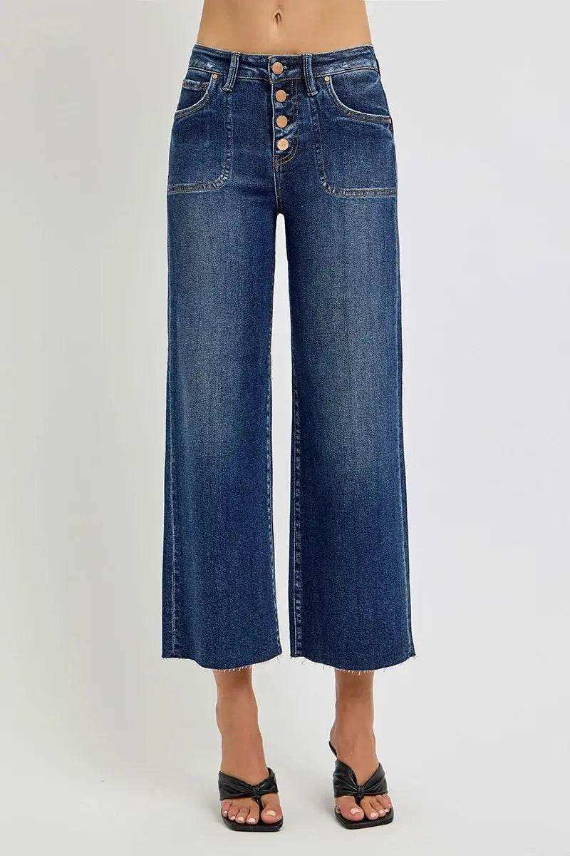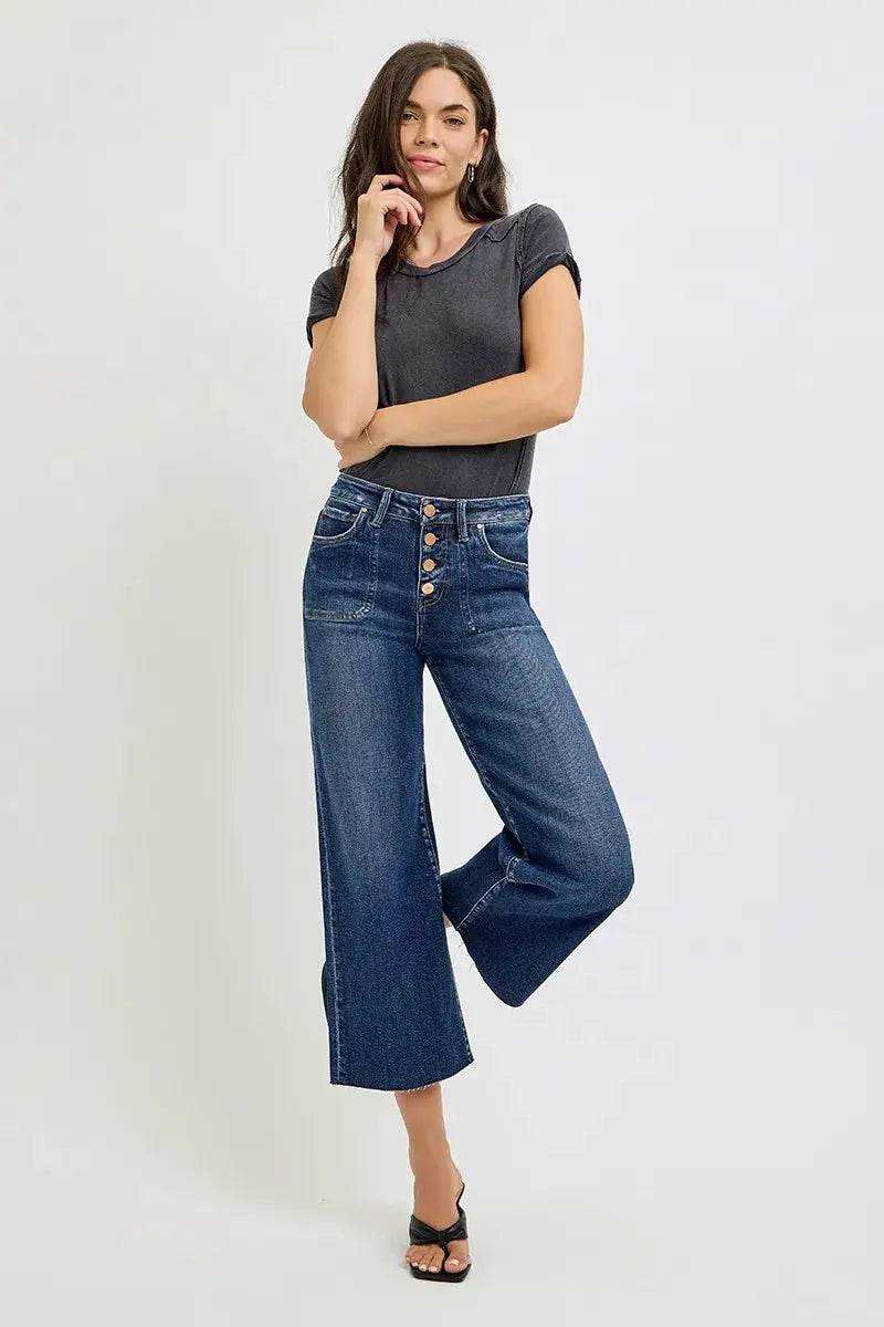 RISEN High Rise Crop Wide Button Up Jeans Plus & Regular Size These premium wide-leg cropped jeans feature a high-waisted...
