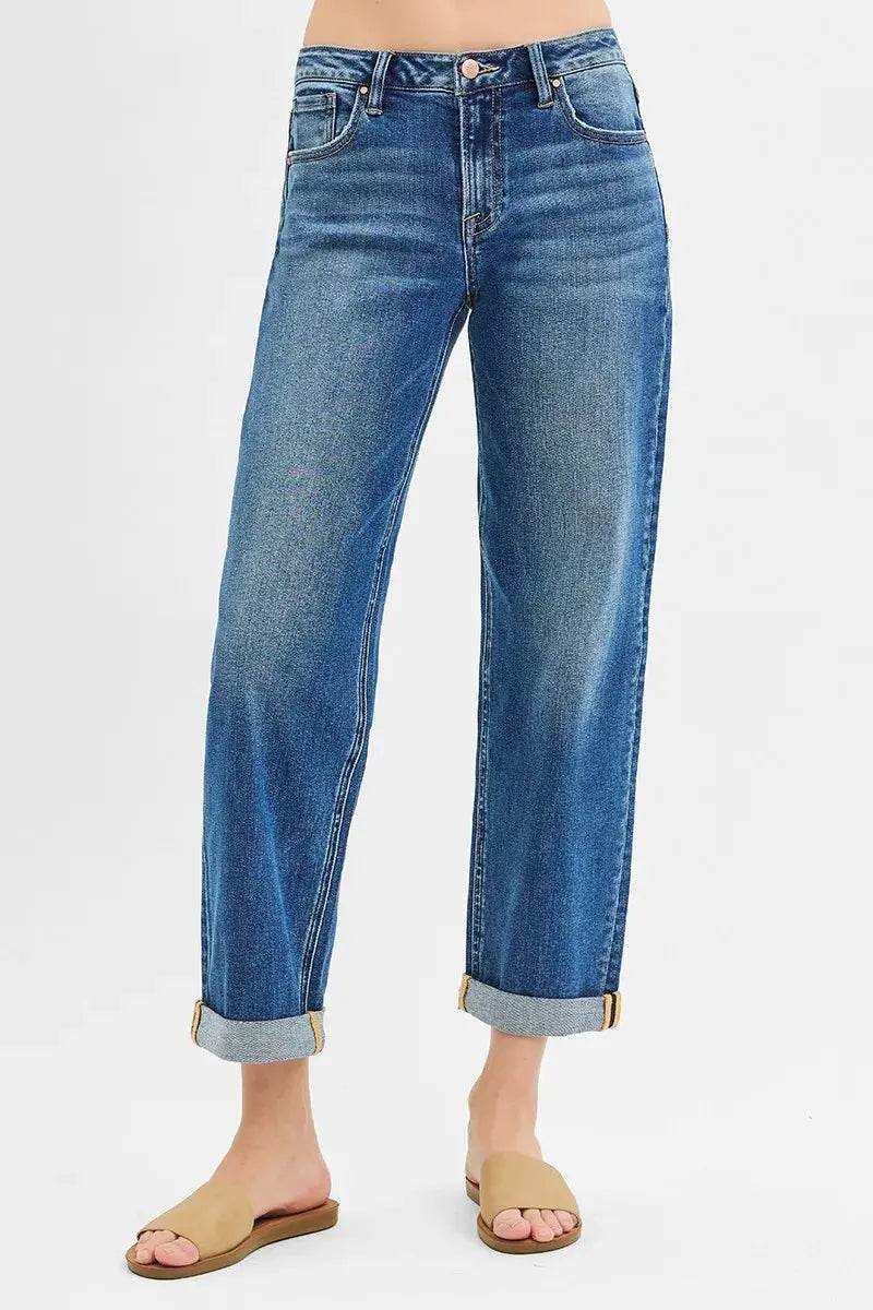 RISEN Mid Rise Boyfriend Roll Up Jeans PG21211