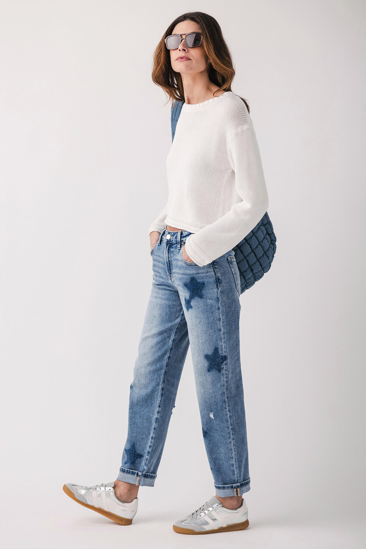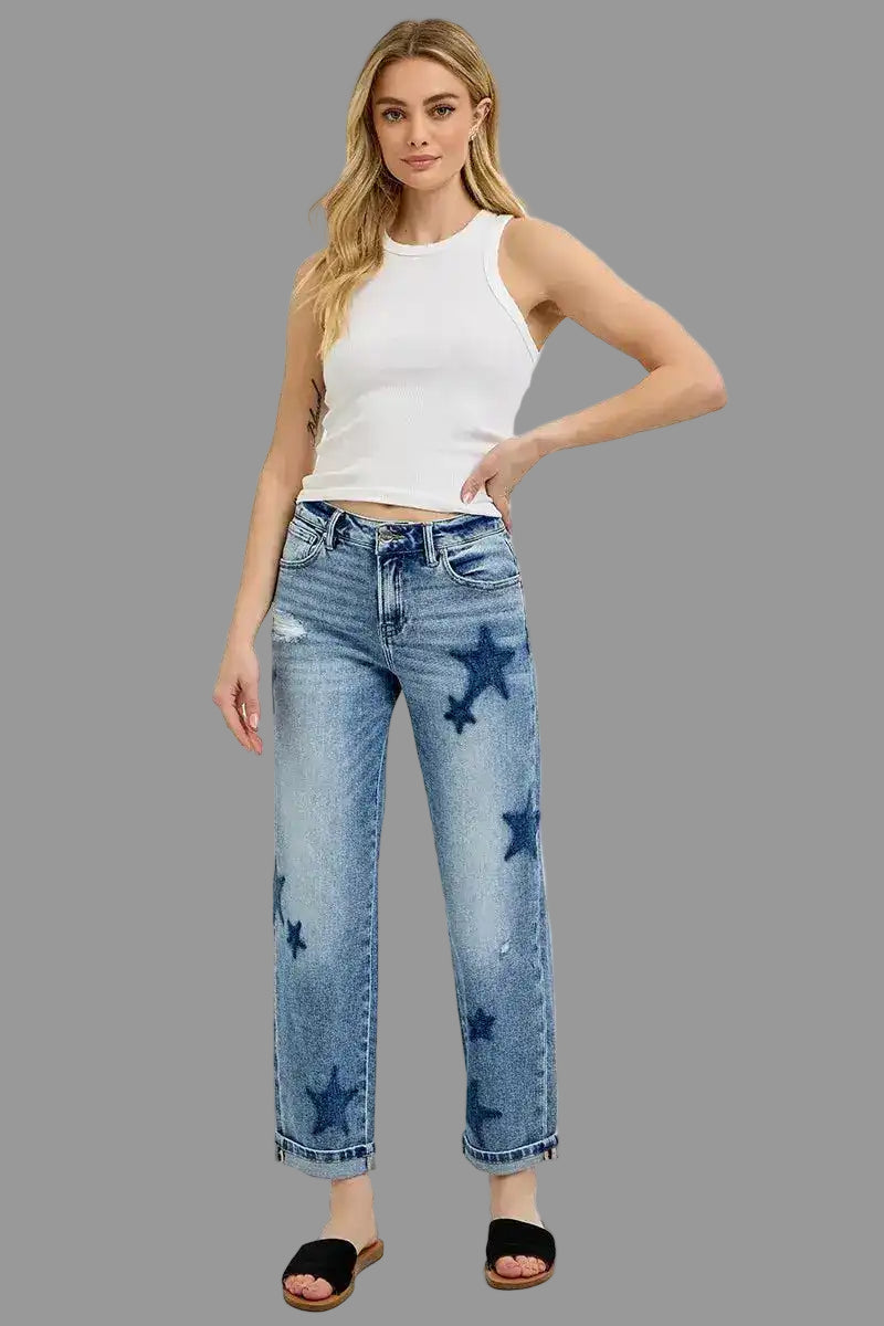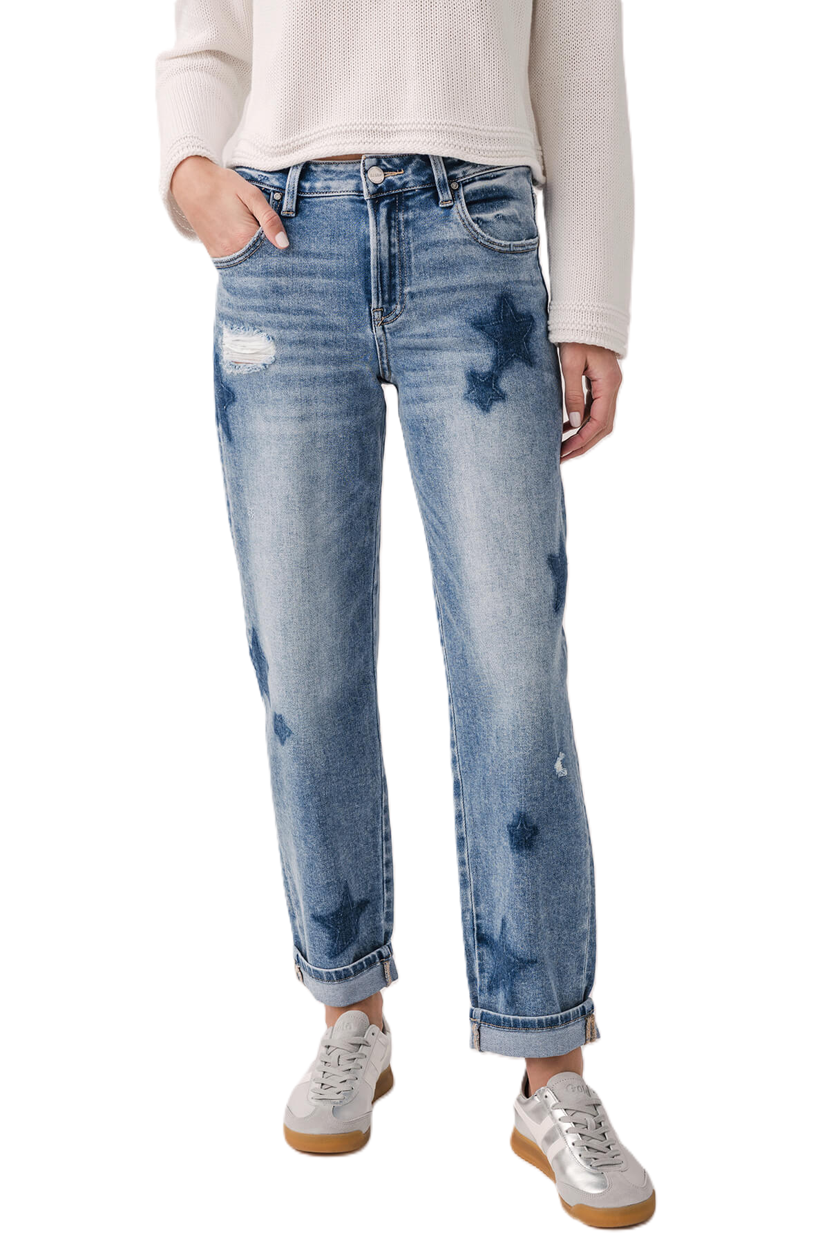 Risen Celeste Mid Rise Star Shadow Boyfriend Jeans - PGA21091