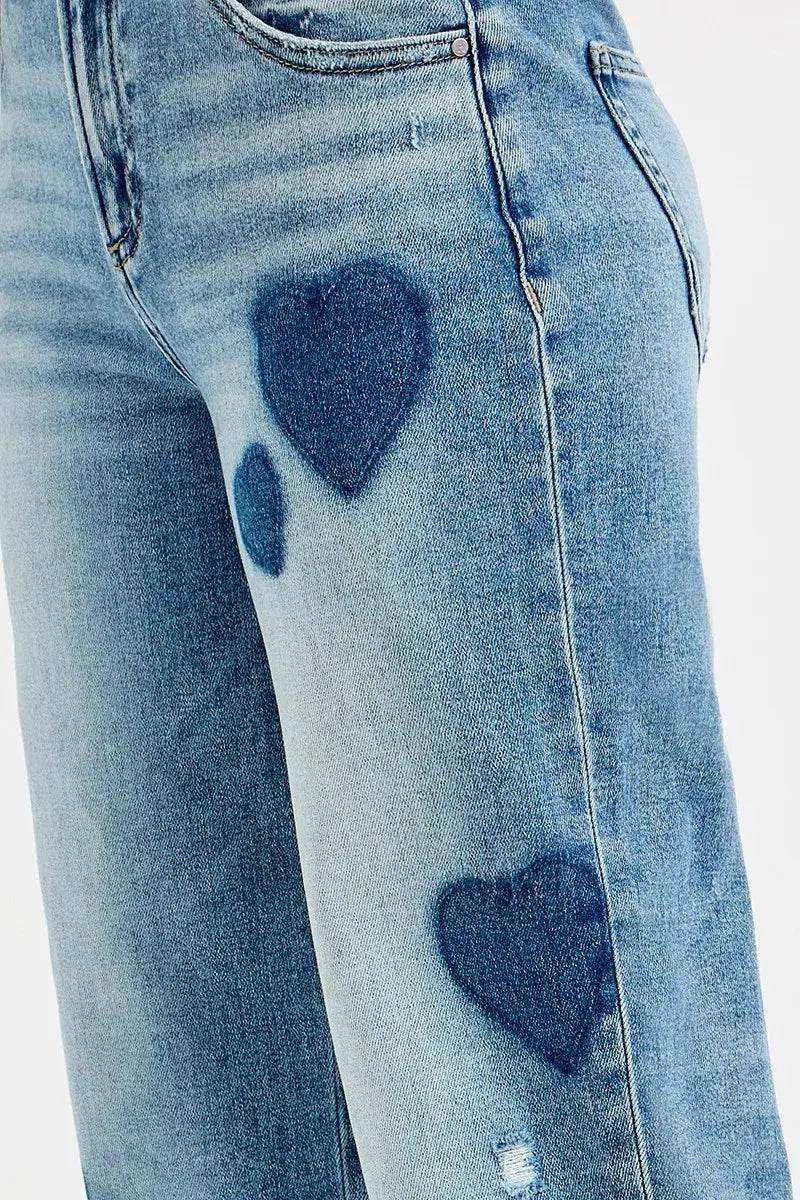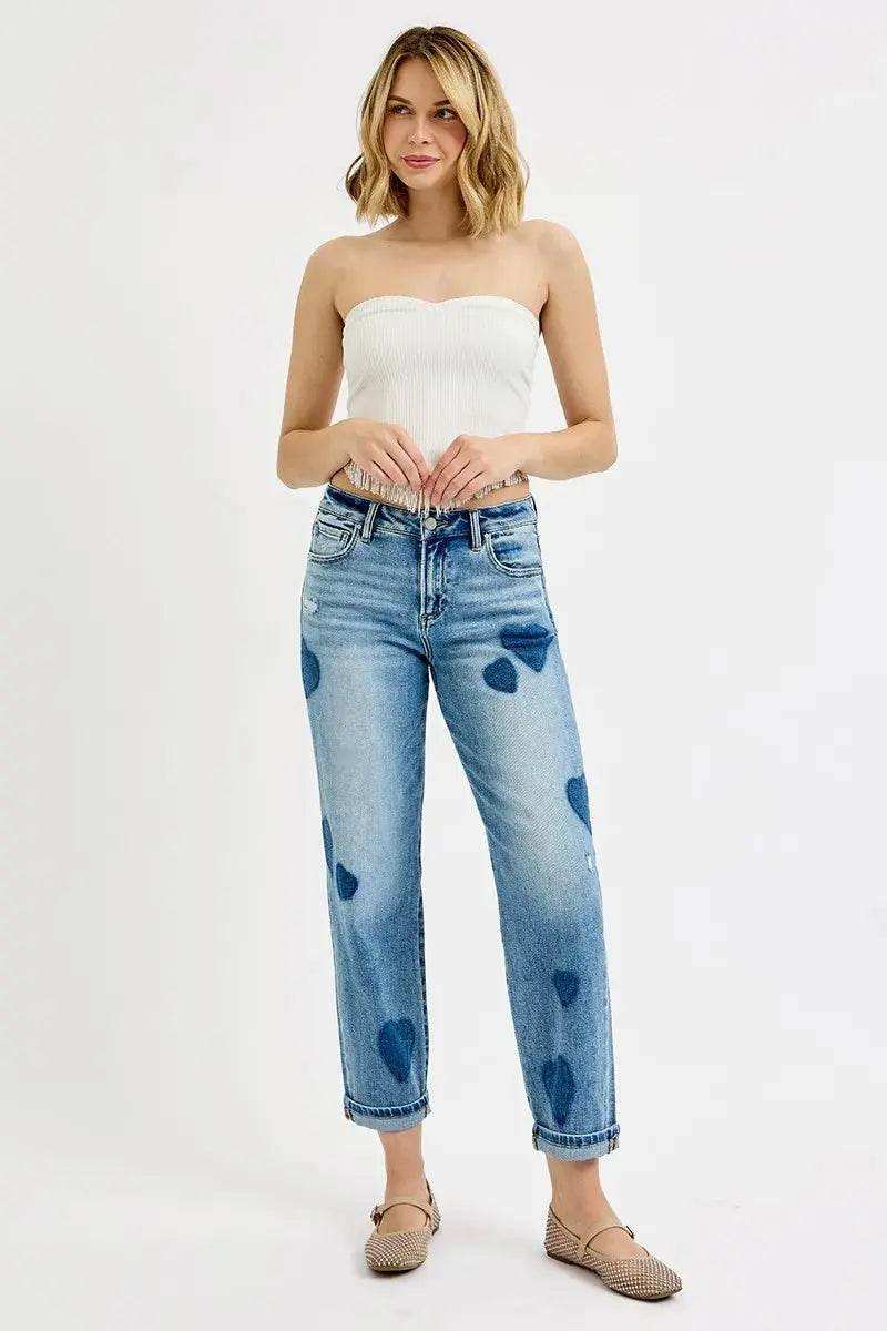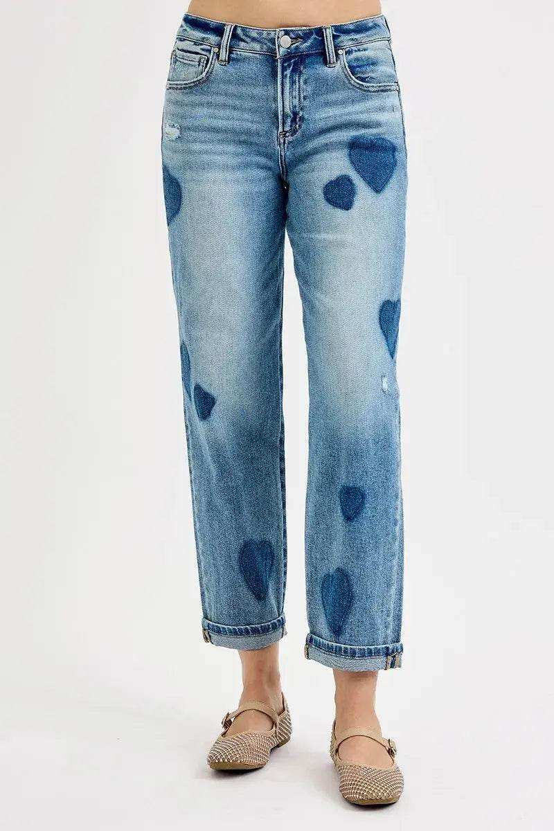 RISEN Mid Rise Fit-boyfriend Heart Shade Jeans
