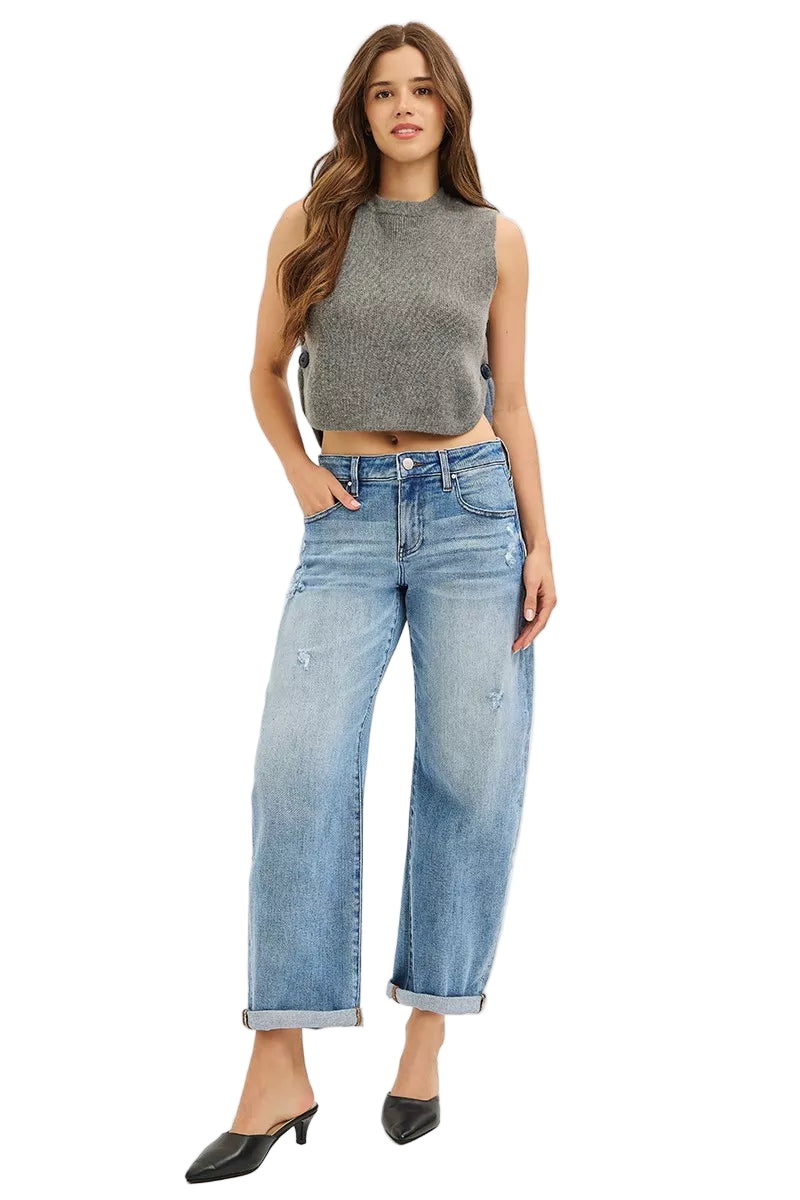 RISEN Full Size Slouchy Ankle Length Barrel Jeans with Cuffs Plus Size