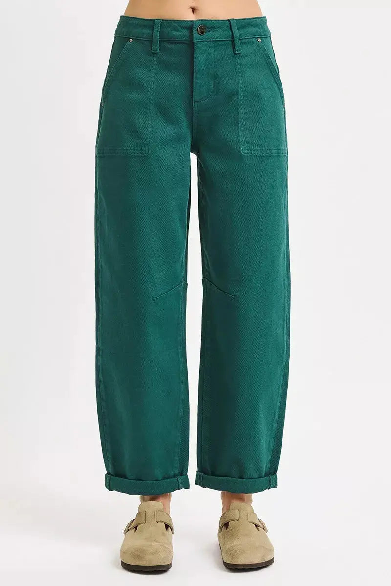 RISEN High Rise Ankle Cuffed Barrel Pants