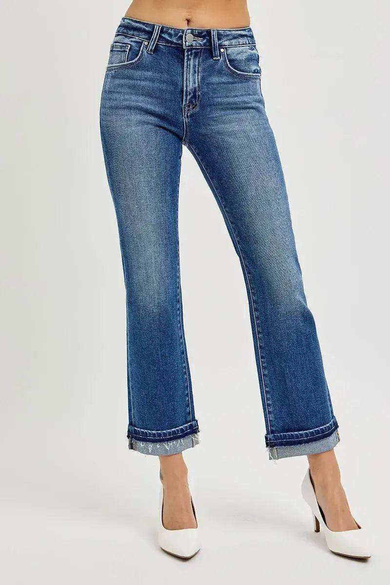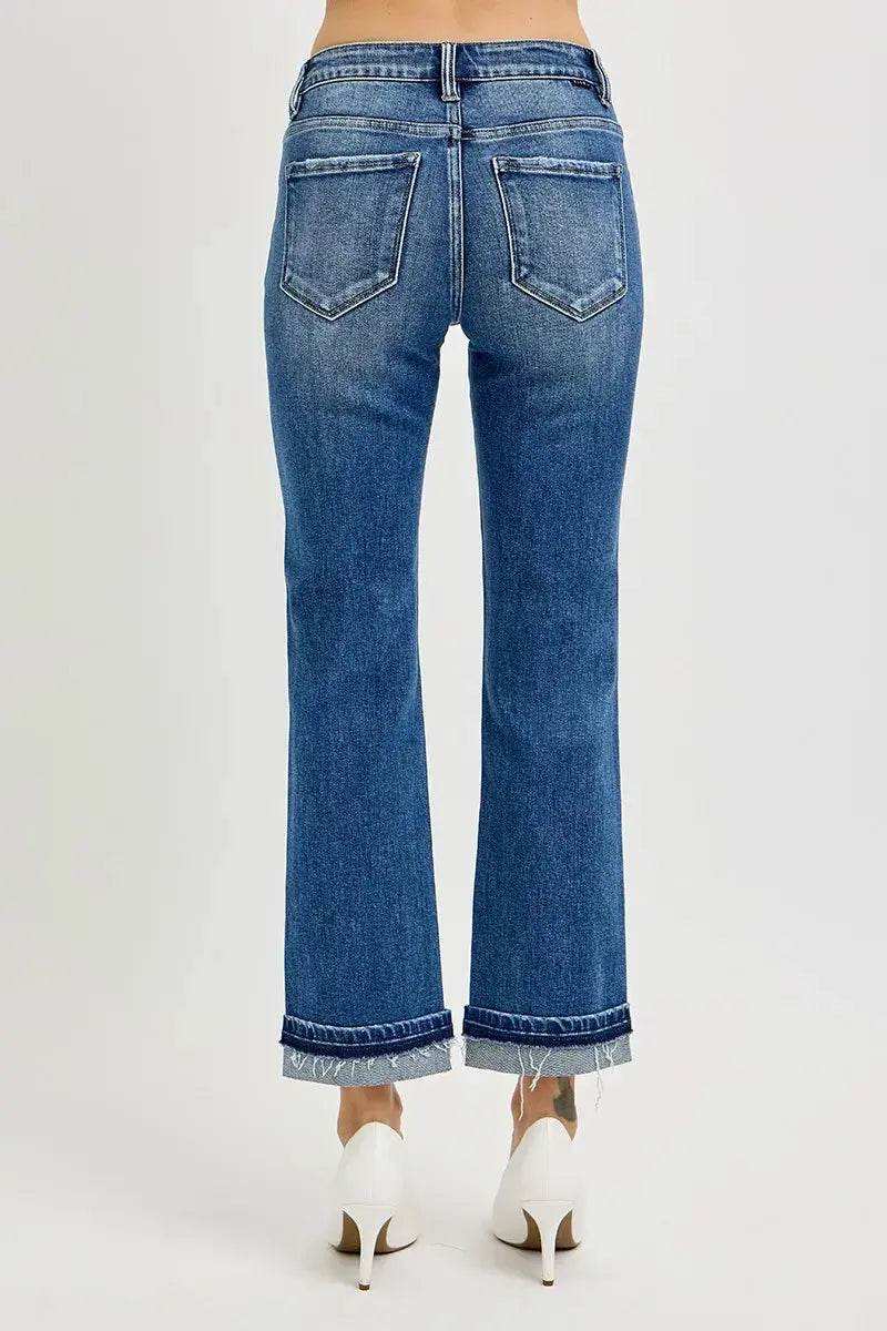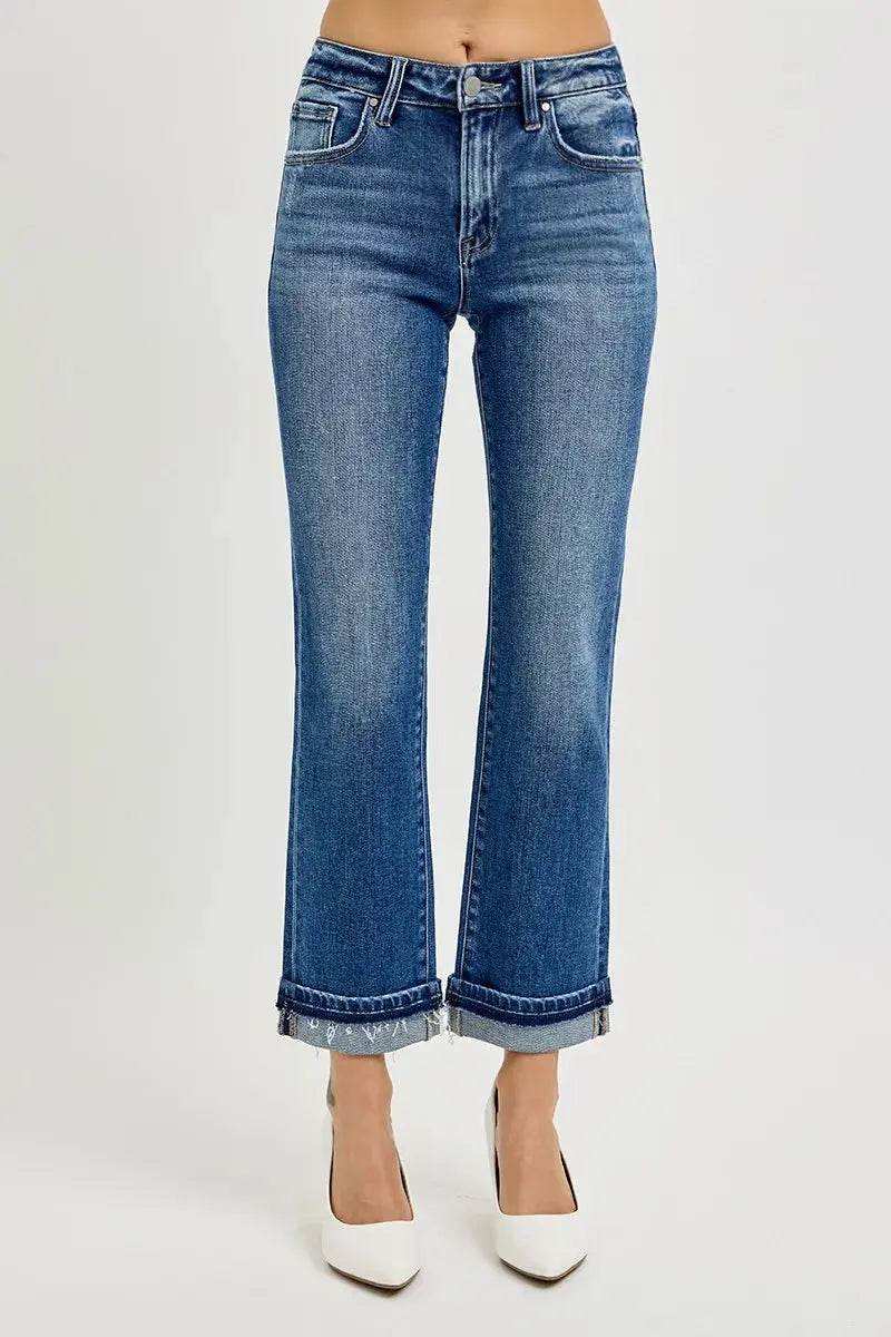 RISEN Mid Rise Ankle Straight Cuffed Jeans
