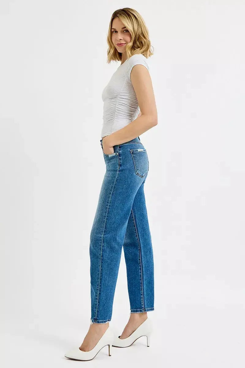 RISEN Tummy Control High Rise Ankle Slim Barrel Jeans