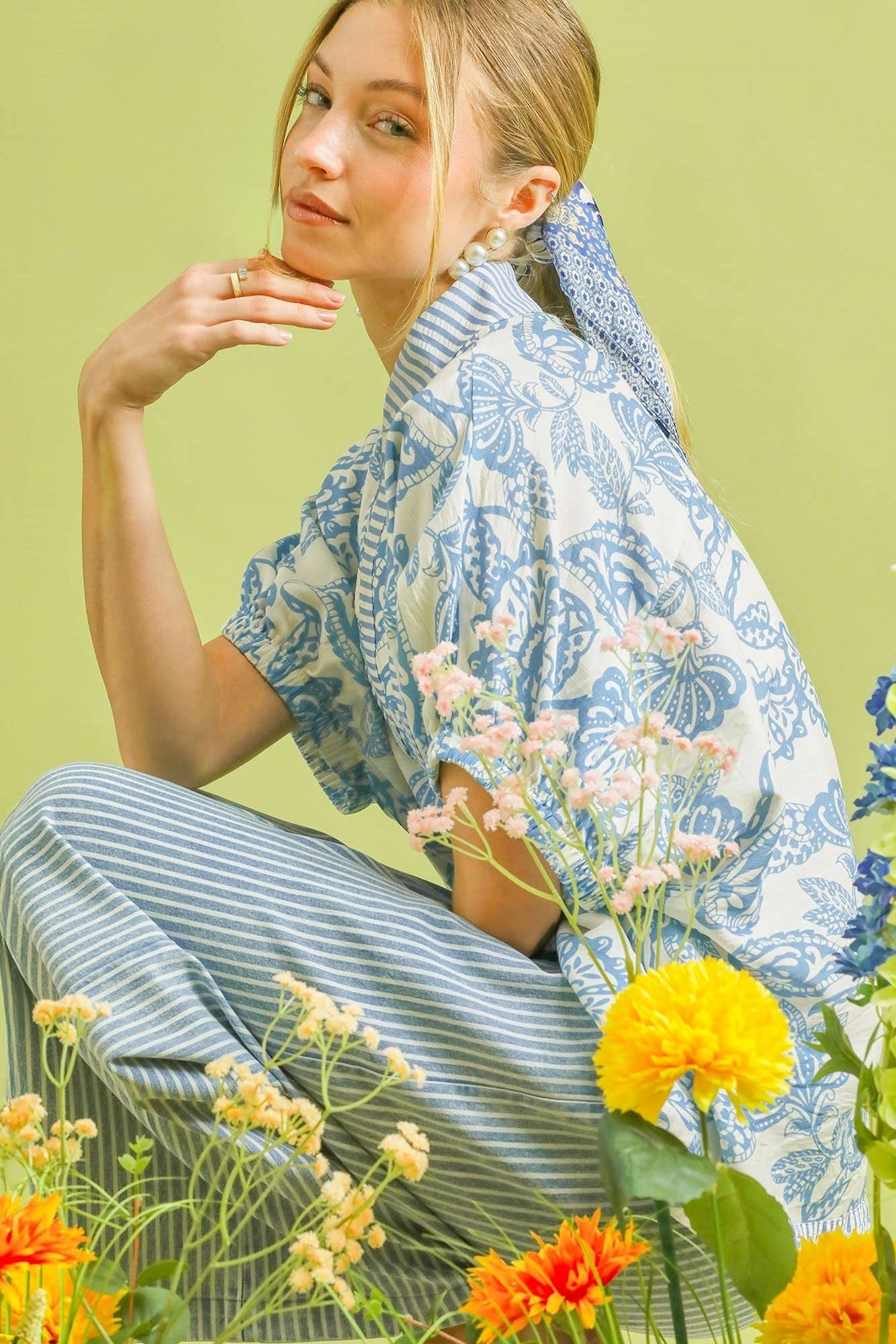 The Botanical Print Mixed Trim Tunic Top is a stylish and unique piece that will elevate your outfit. The botanical print adds a fresh and trendy touch to this tunic top. With mixed trim detailing, this top offers a modern and sophisticated look. The tunic length provides coverage and comfort, making it perfect for pairing with leggings or skinny jeans. Whether worn with sandals for a casual day out or dressed up with heels for a night out, this top will make a statement wherever you go.
