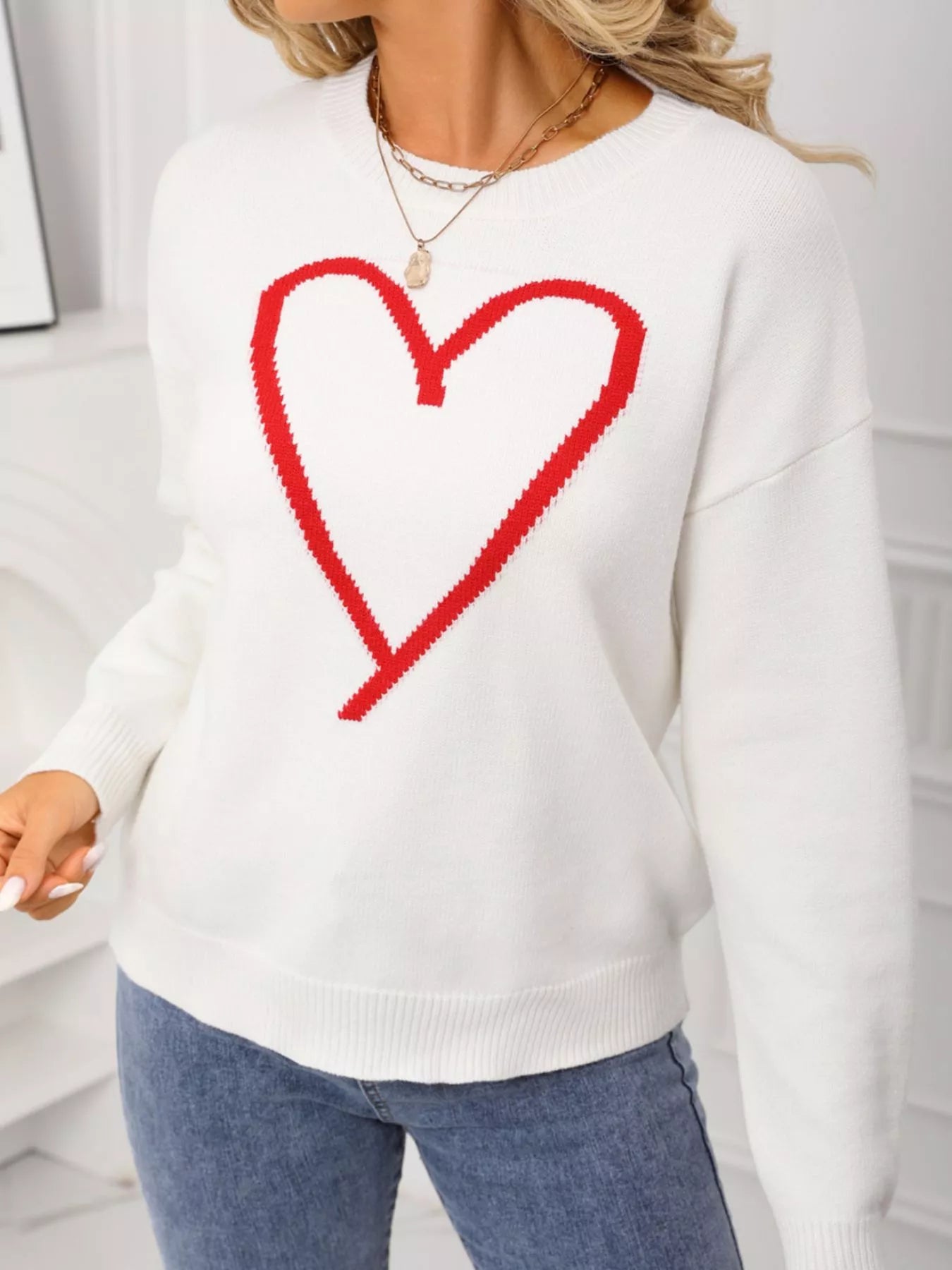 Valentine's Day Heart Graphic Dropped Shoulder Sweater