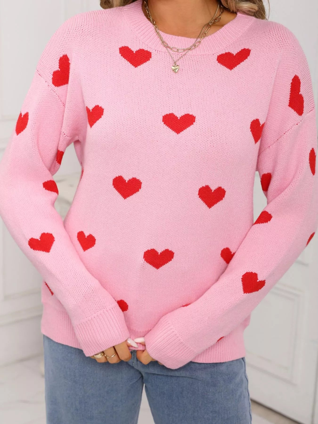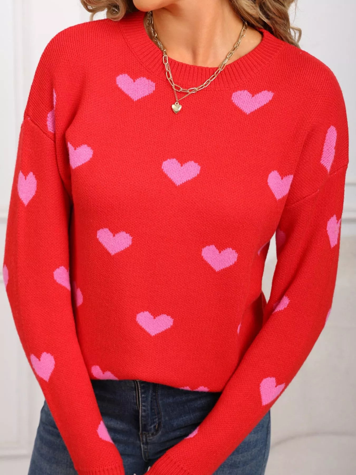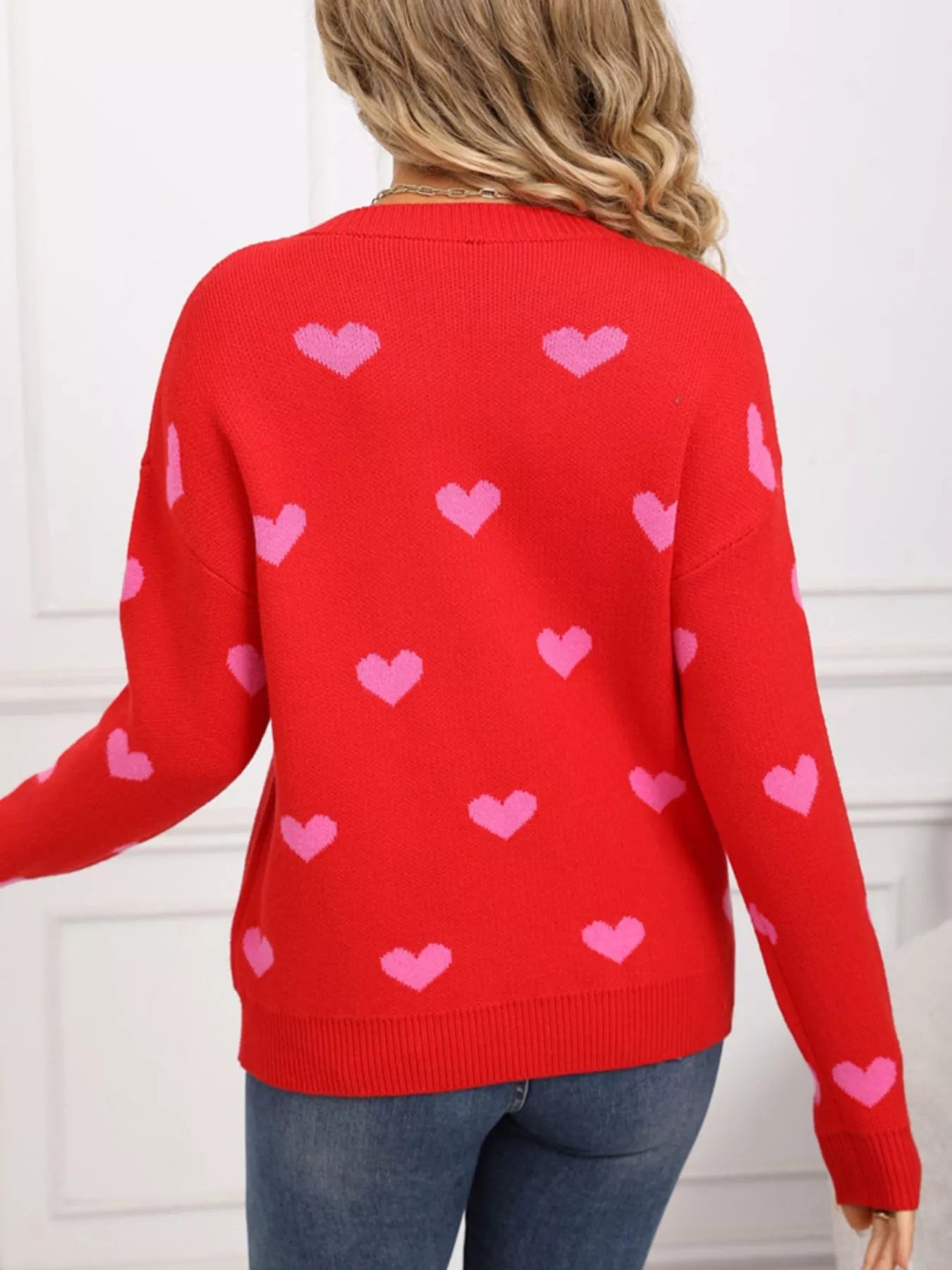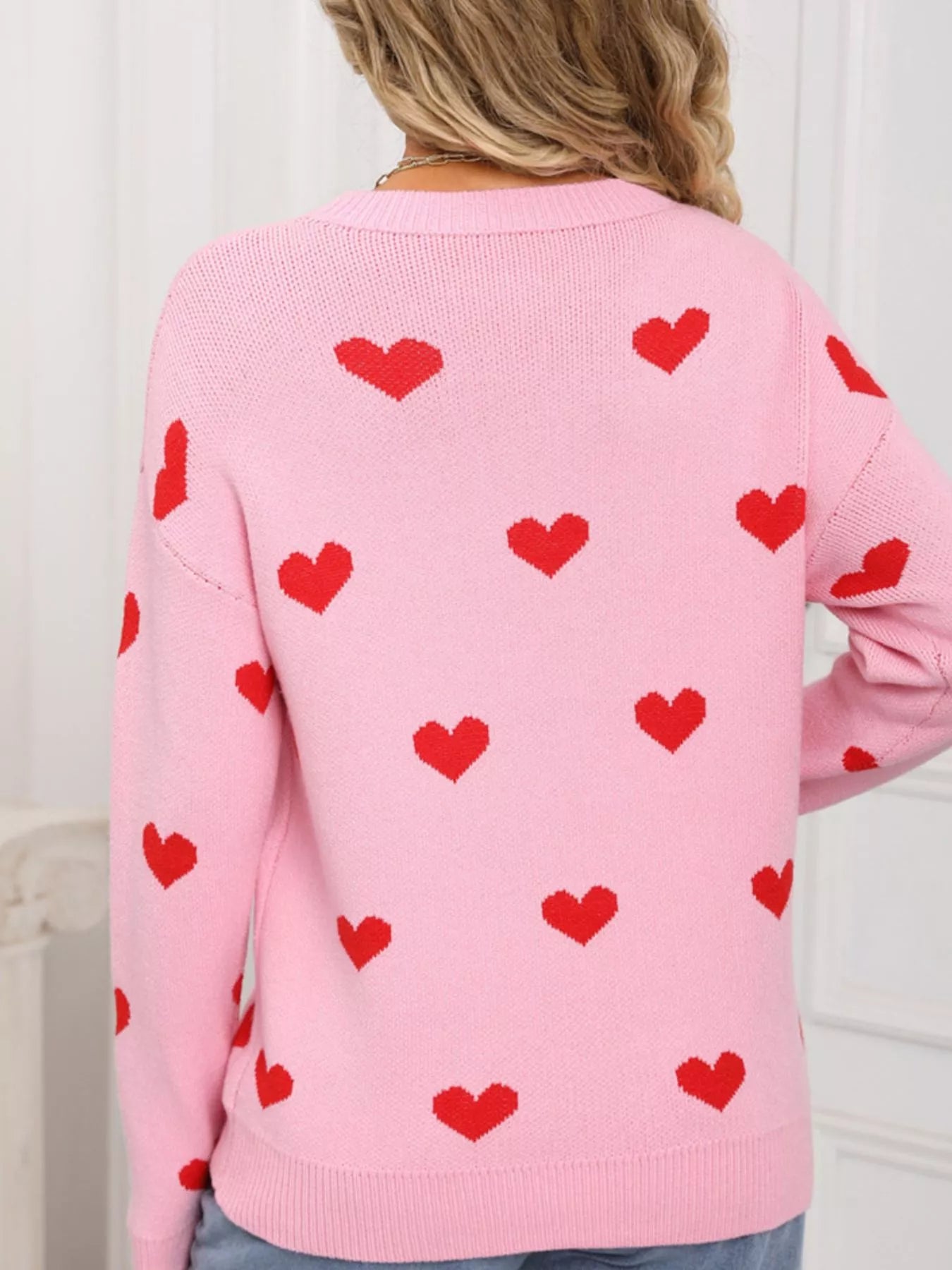 Valentine's Day Heart Pattern Dropped Shoulder Sweater