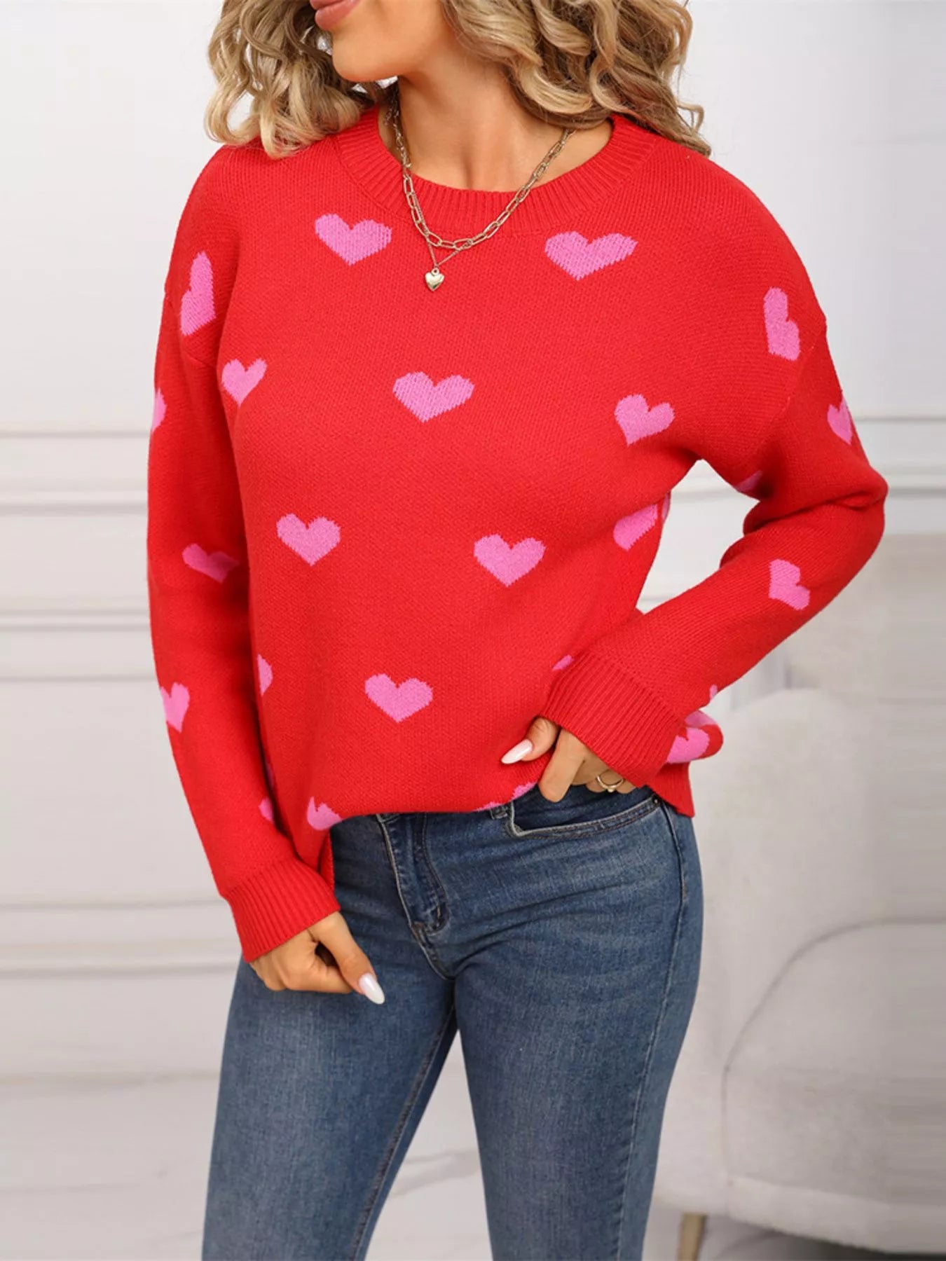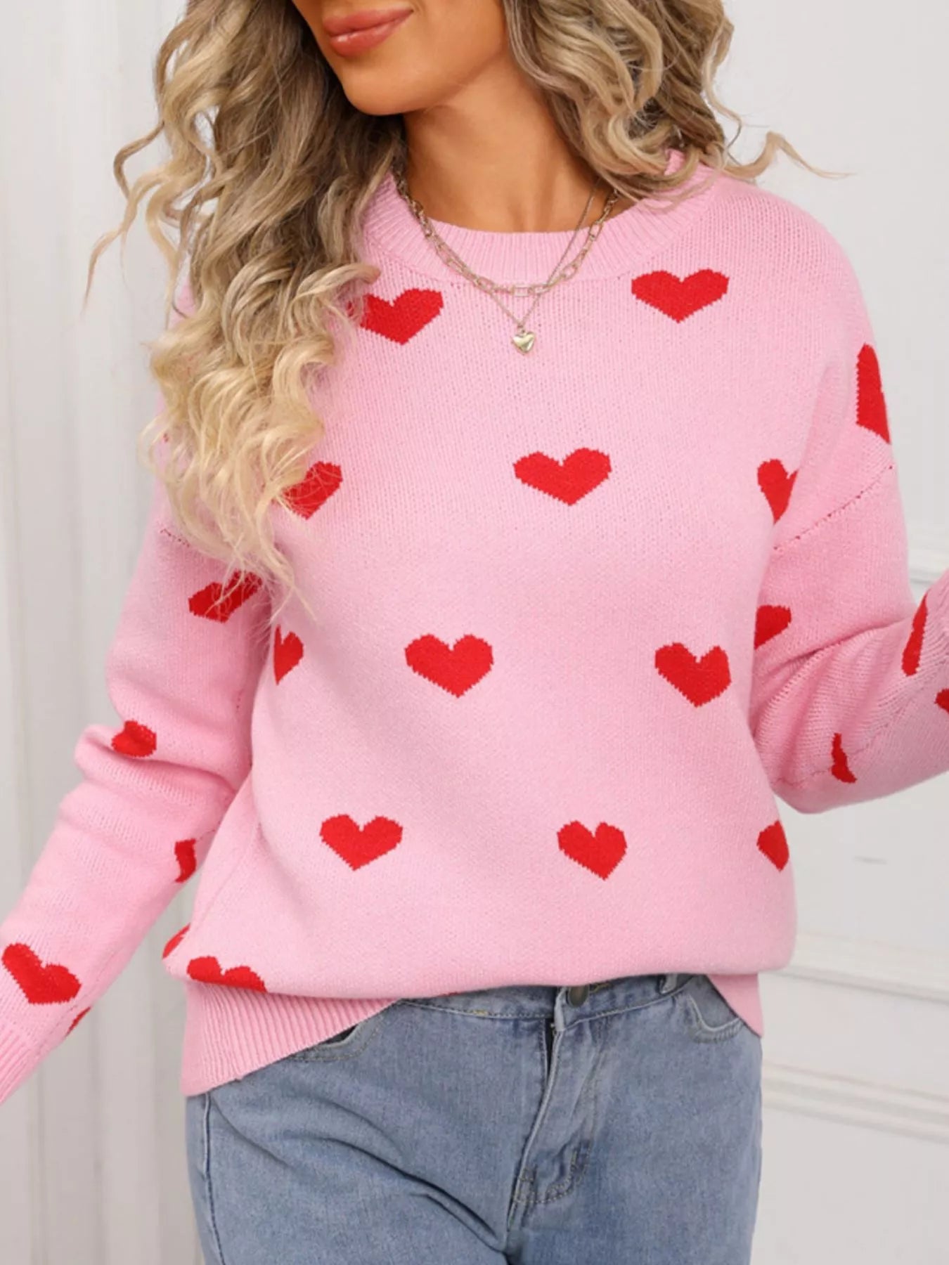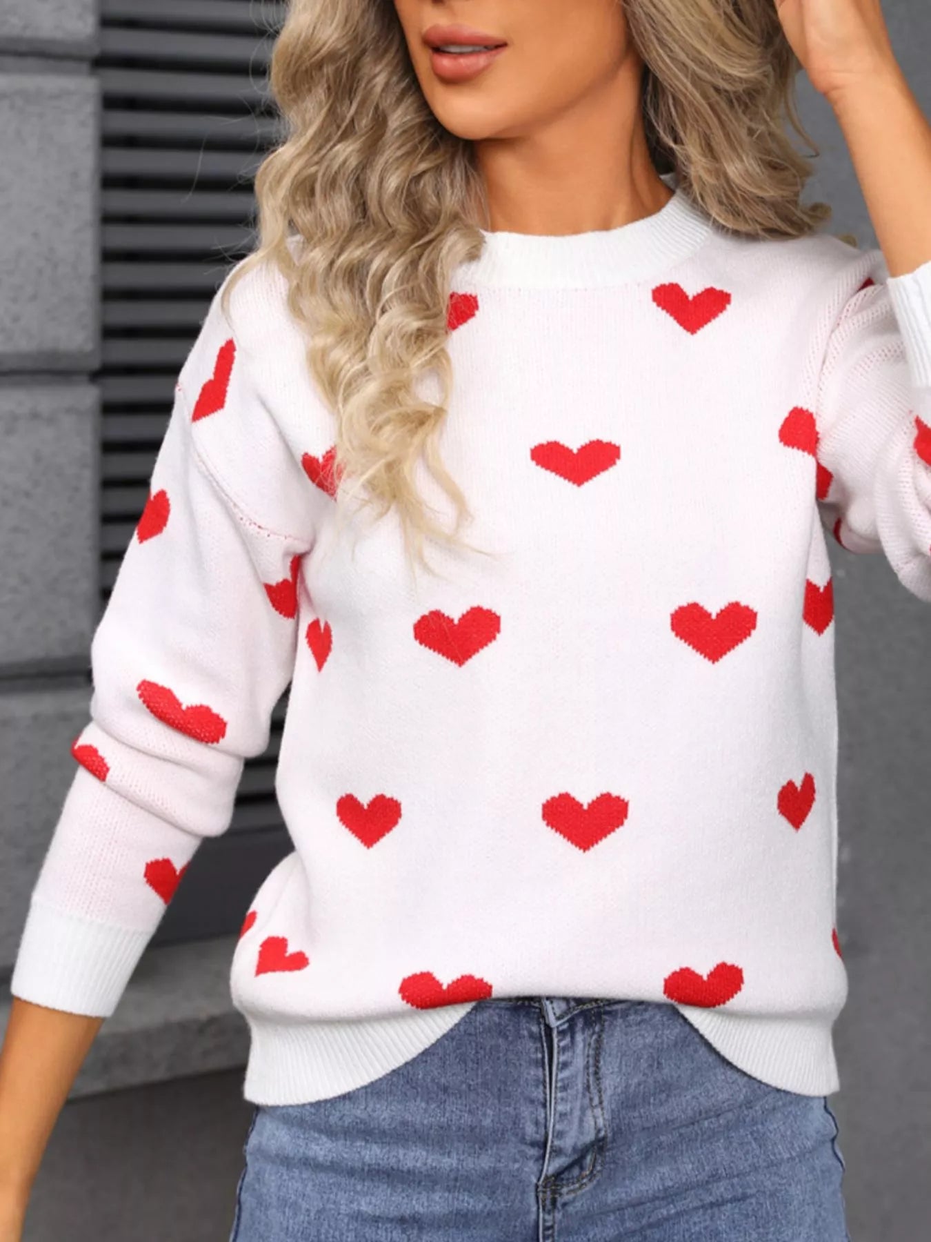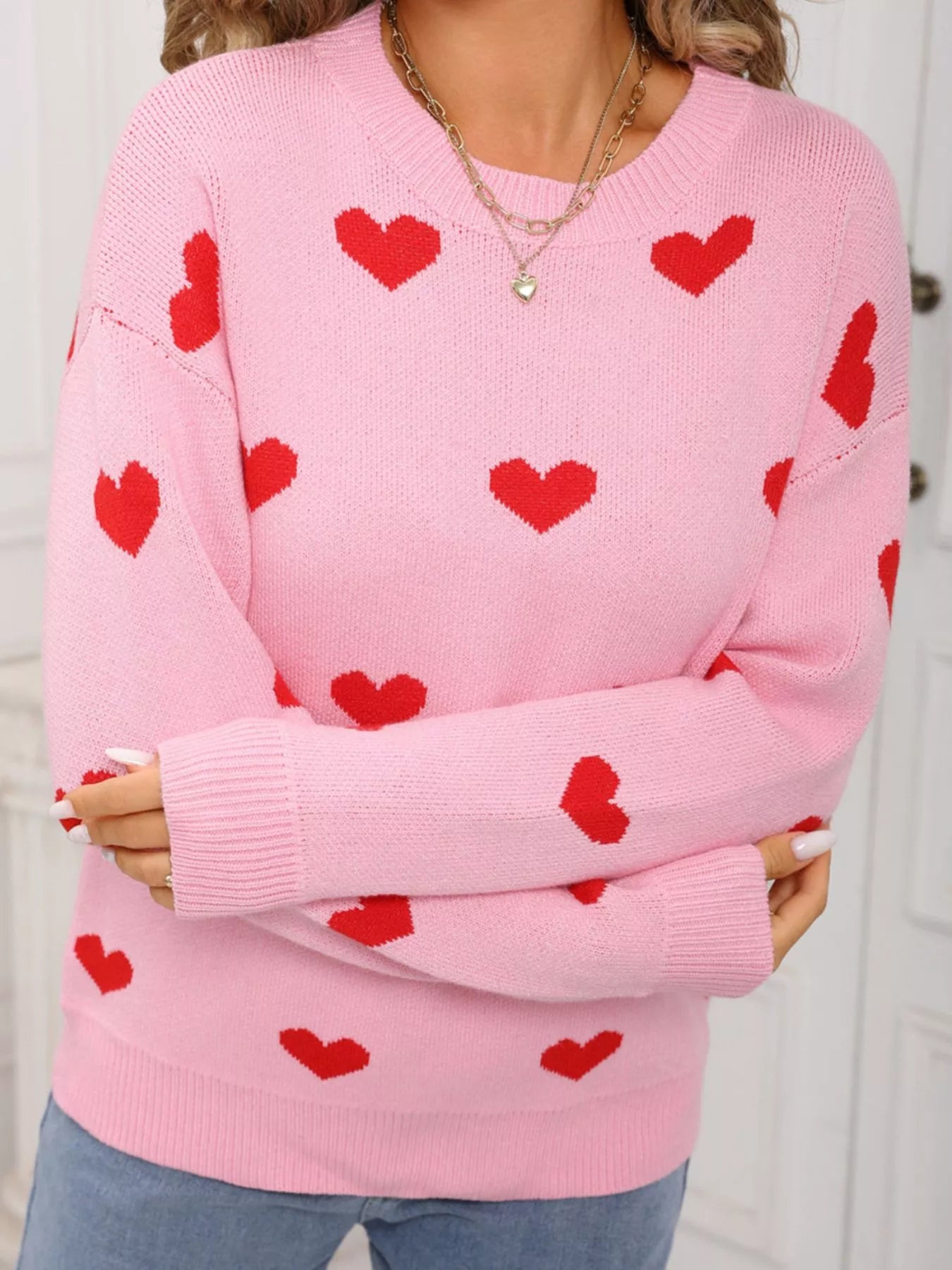 Valentine's Day Heart Pattern Dropped Shoulder Sweater