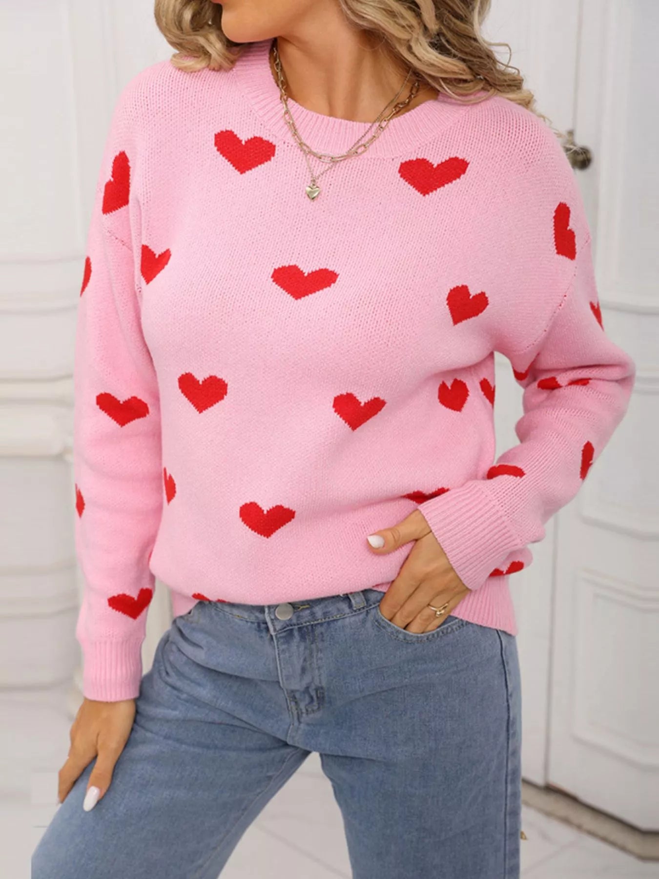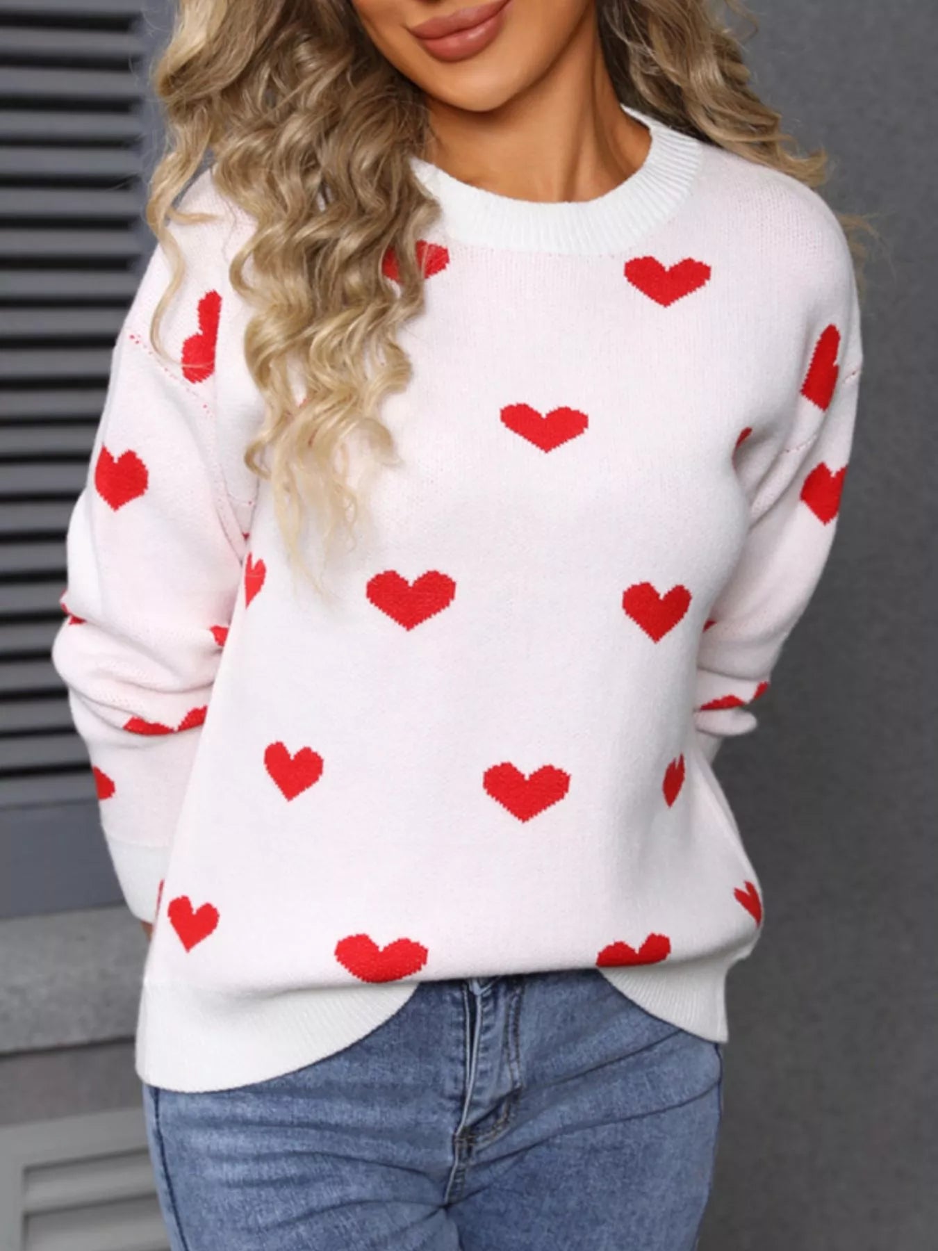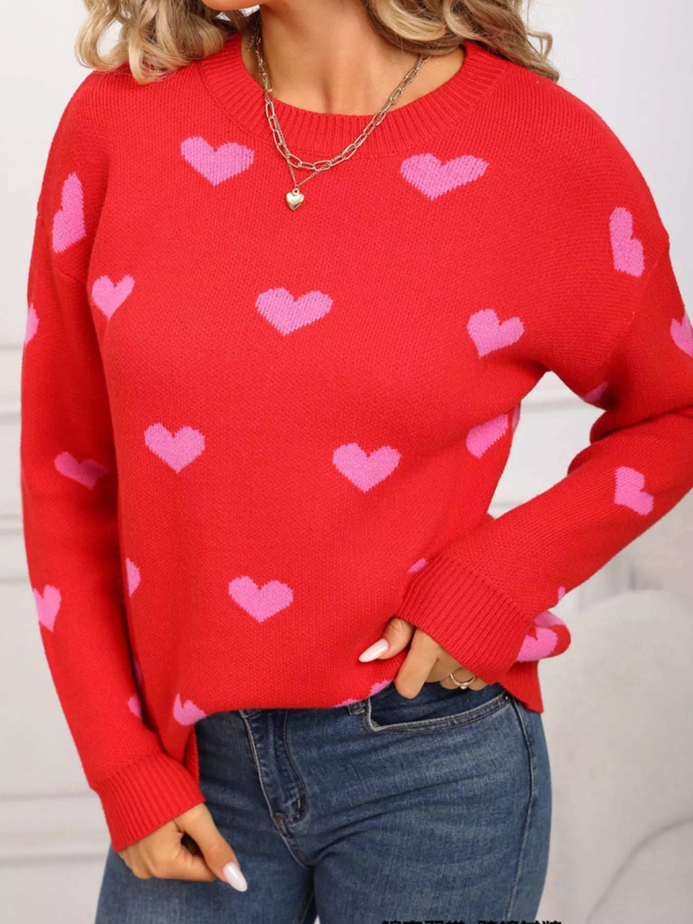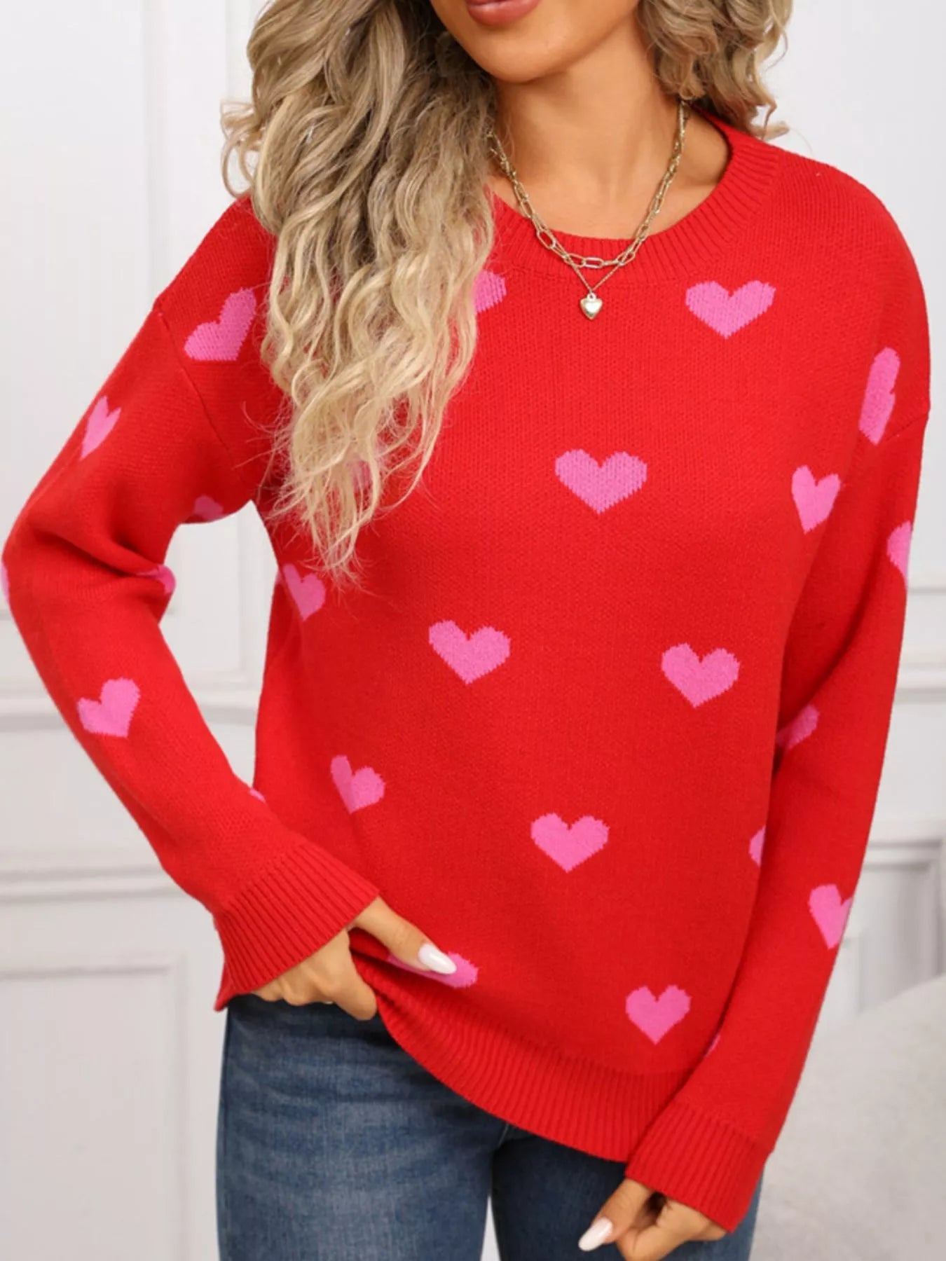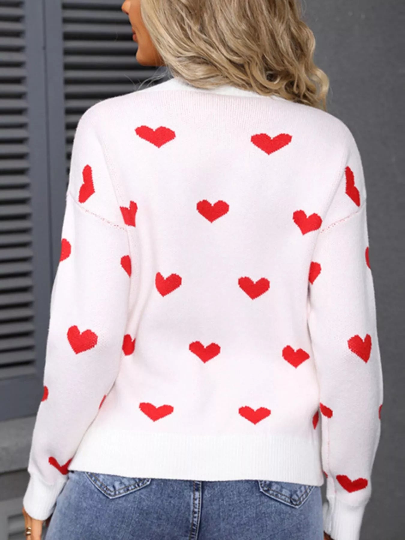 Valentine's Day Heart Pattern Dropped Shoulder Sweater