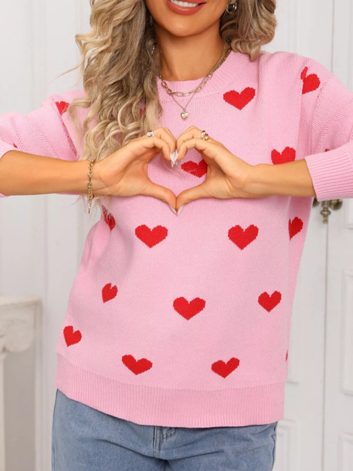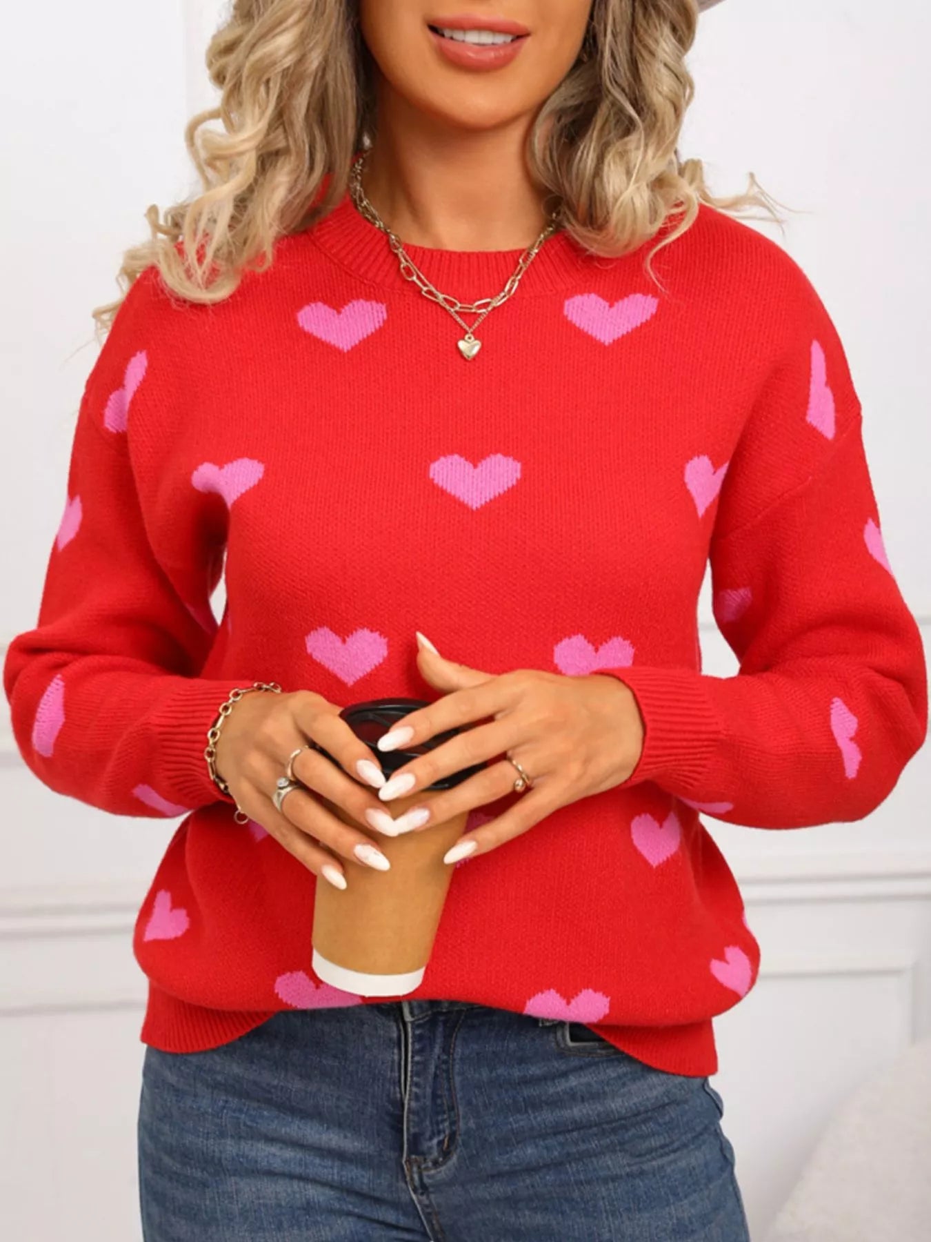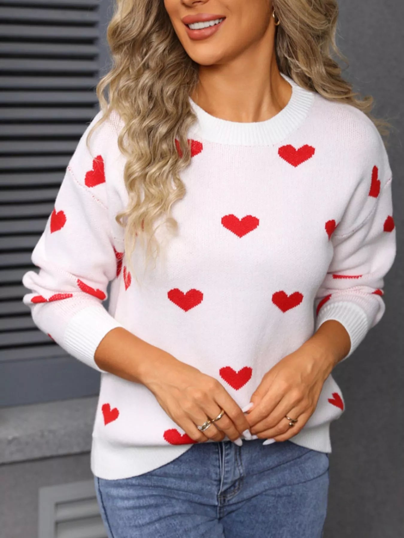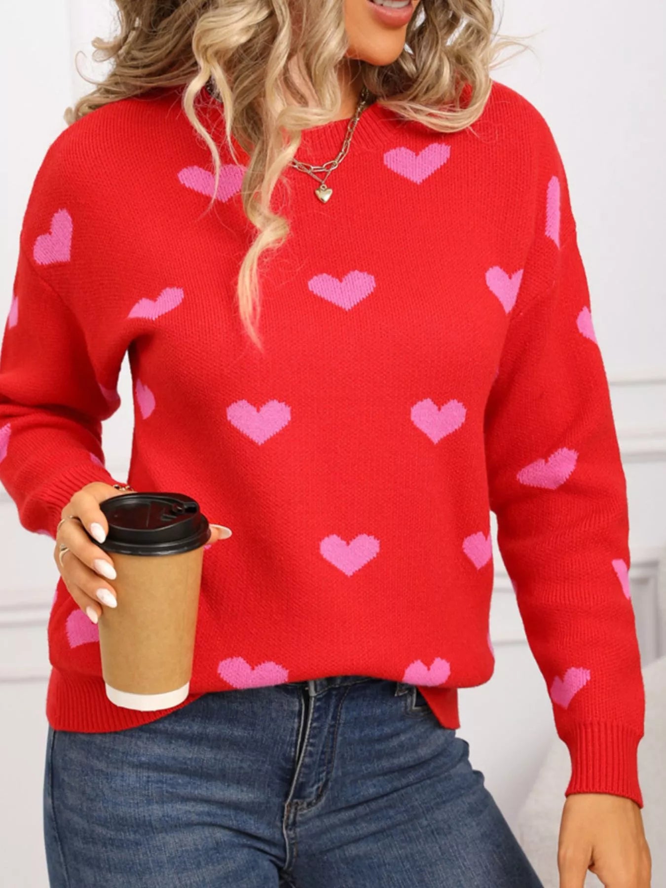 Valentine's Day Heart Pattern Dropped Shoulder Sweater