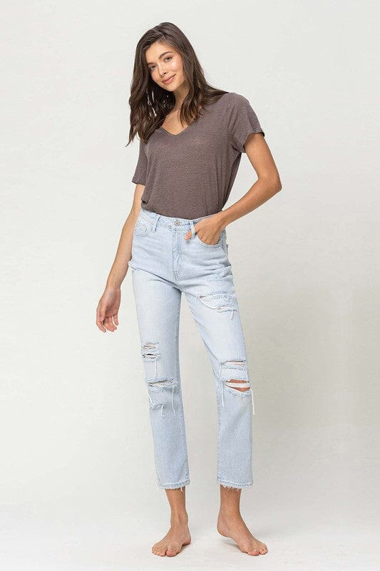 SUPER HIGH RISE DISTRESSED SLIM CROP STRAIGHT
