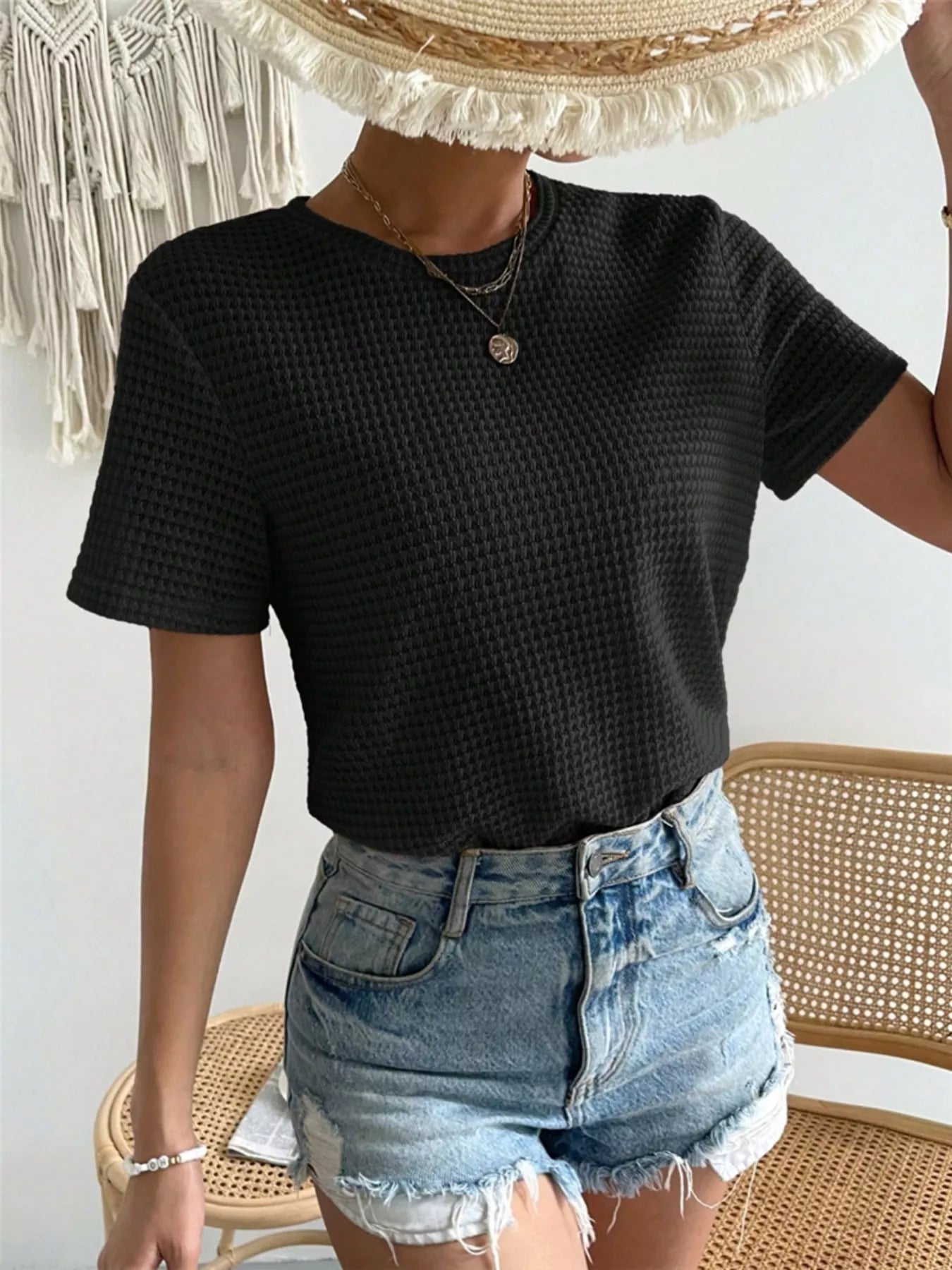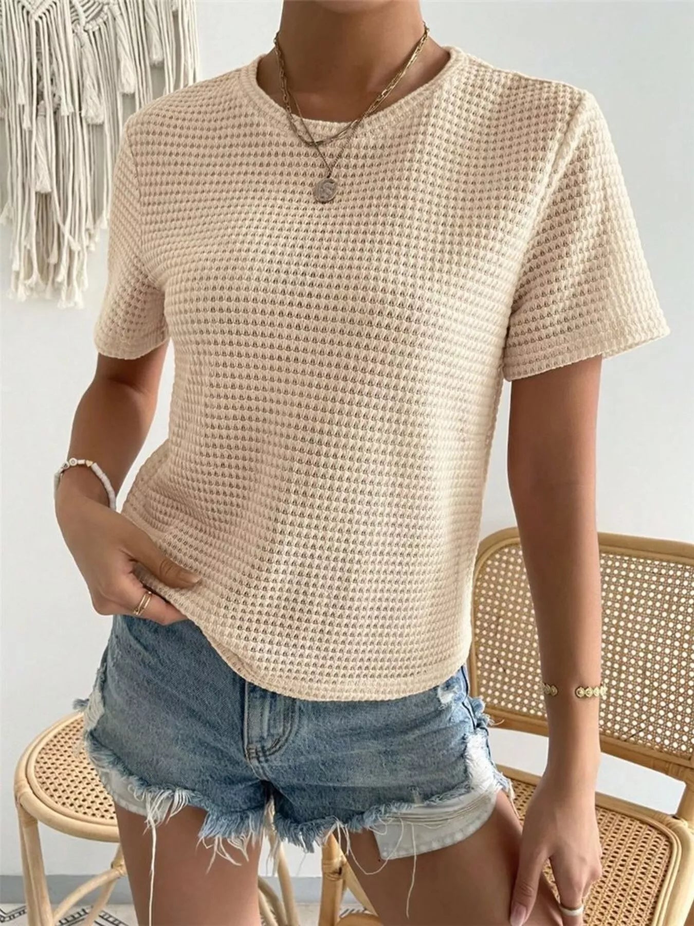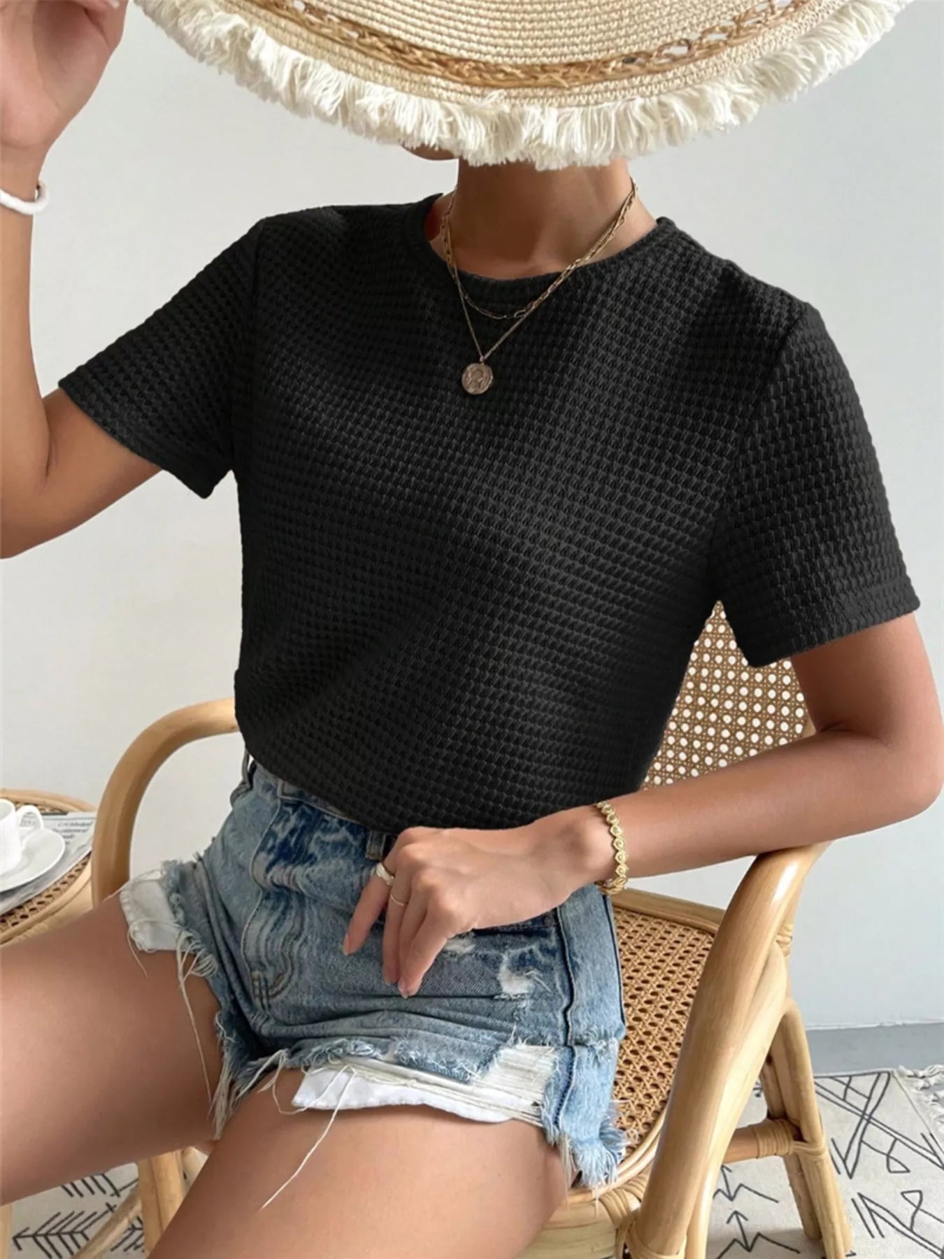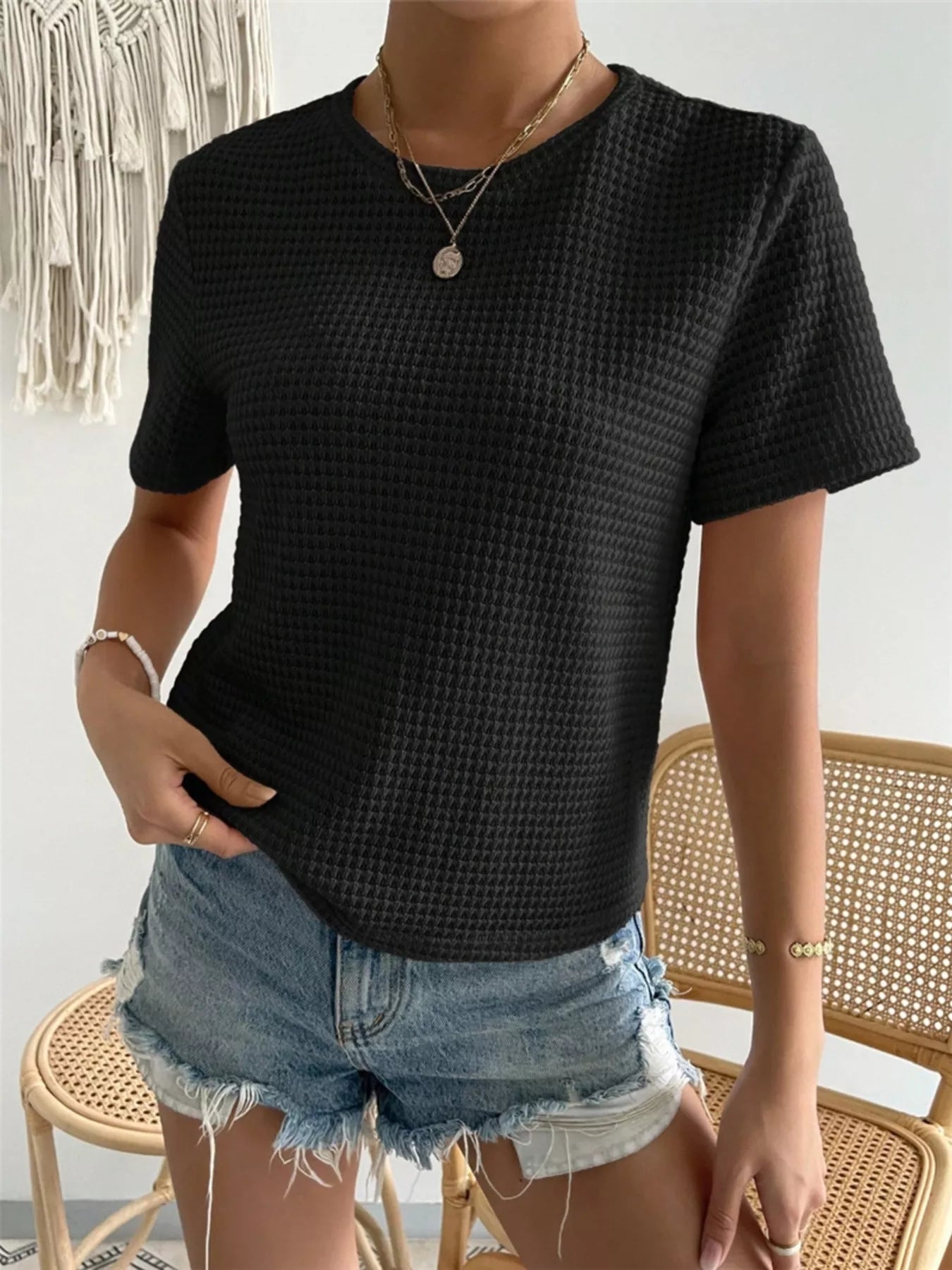 Waffle Knit Short Sleeve T-Shirt